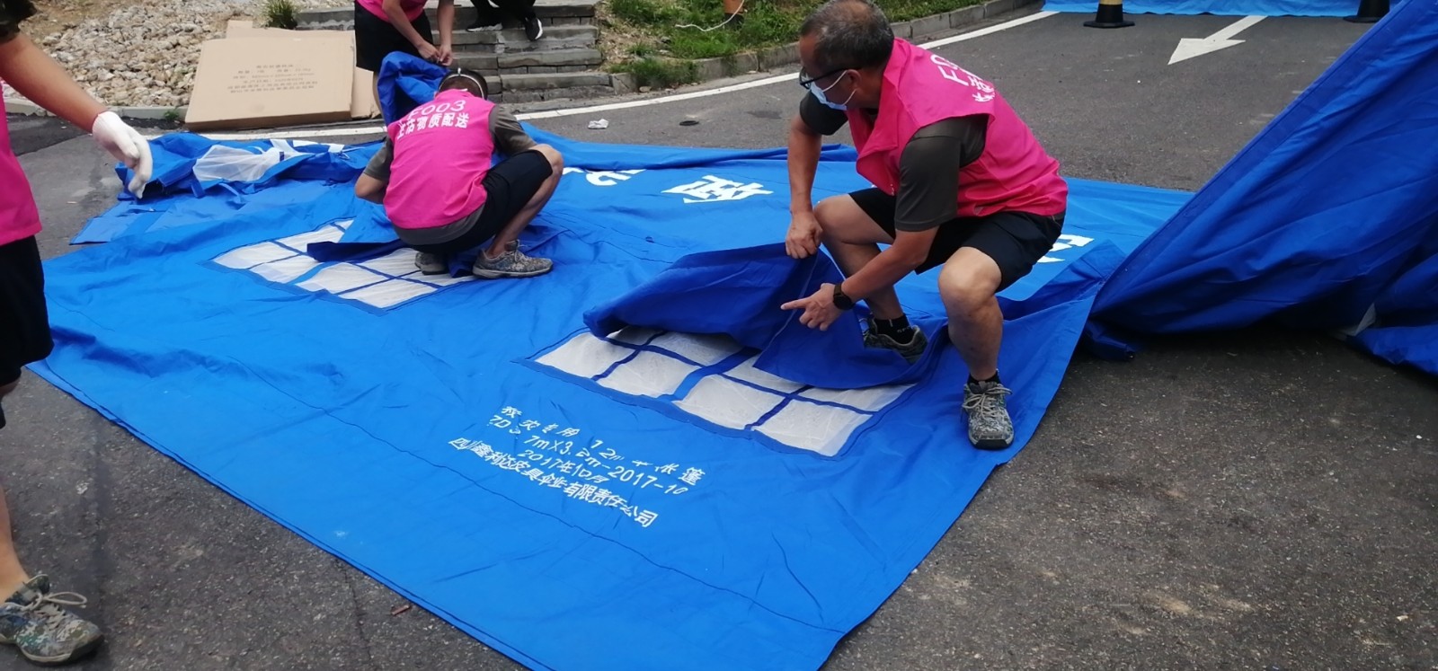 在當?shù)匾咔榉揽刂笓]部的帶領下,王成勇、祝長青,身披“志愿紅”,深入封控區(qū)域,從晨光熹微到燈火闌珊,一整天都是后背全濕,每一天都是腰酸背痛。但他們明白,“哪里需要就沖向哪里”。二人先后9次進入高風險區(qū)搭建應急帳篷,為的是這一頂頂帳篷能夠為來自四面八方、各行各業(yè)的志愿者們遮風擋雨,每天一趟趟一袋袋的蔬菜、肉、米、油,讓當?shù)鼐用衽c游客每天都能夠安心避疫。