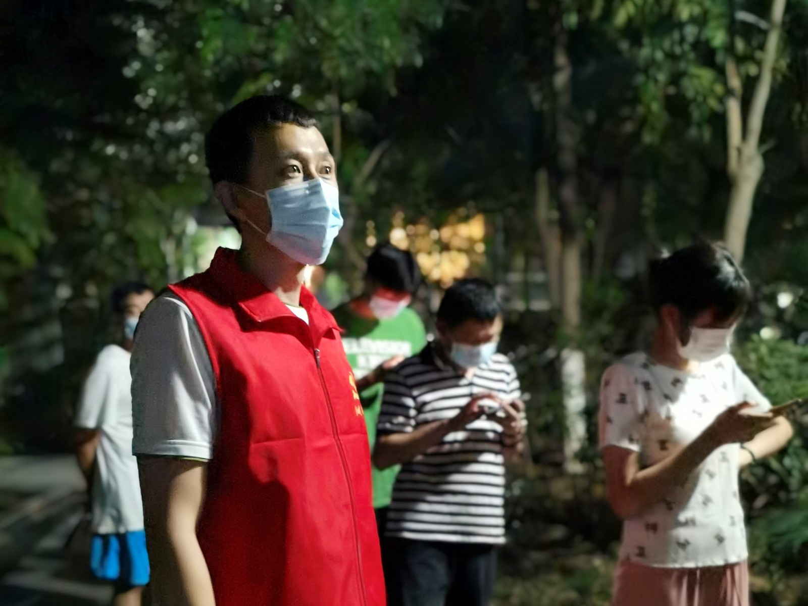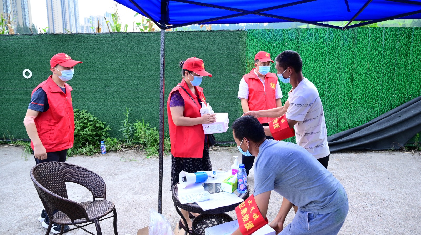 烈日高溫使豆大的汗珠從謝愛東的額頭不斷滑落,每當其他志愿者提出換她休息時,“沒問題,我可以的”便是不變的回應?!芭c家鄉(xiāng)人民一道共度難關,哪怕再熱、再苦、再累都值得。”