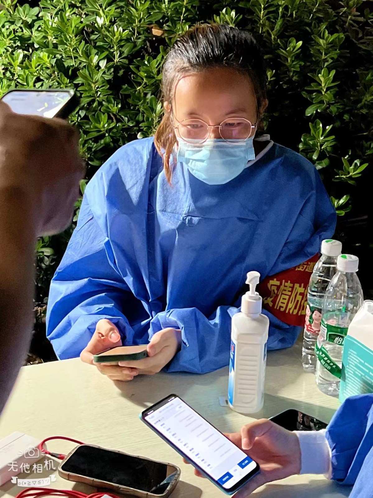 聞疫而動,向“疫”而行。熊懿佳是公司所屬川投電力一名黨員, 9月1日當天下班回家的她來不及換下工裝,直接套上“紅馬甲”,第一時間變身志愿者。經(jīng)過簡要的現(xiàn)場培訓后開始在核酸檢測點、小區(qū)出入關(guān)卡等十幾個點位循環(huán)工作,汗水浸濕全身,手套換了又換,頻繁的酒精消毒把手泡得發(fā)白褶皺。平日里愛美的她卻毫不在意,“成都疫情沒有結(jié)束,我的腳步就不會停歇。作為一名能源人,我就是要在抗疫前線發(fā)出最耀眼的一抹光!”