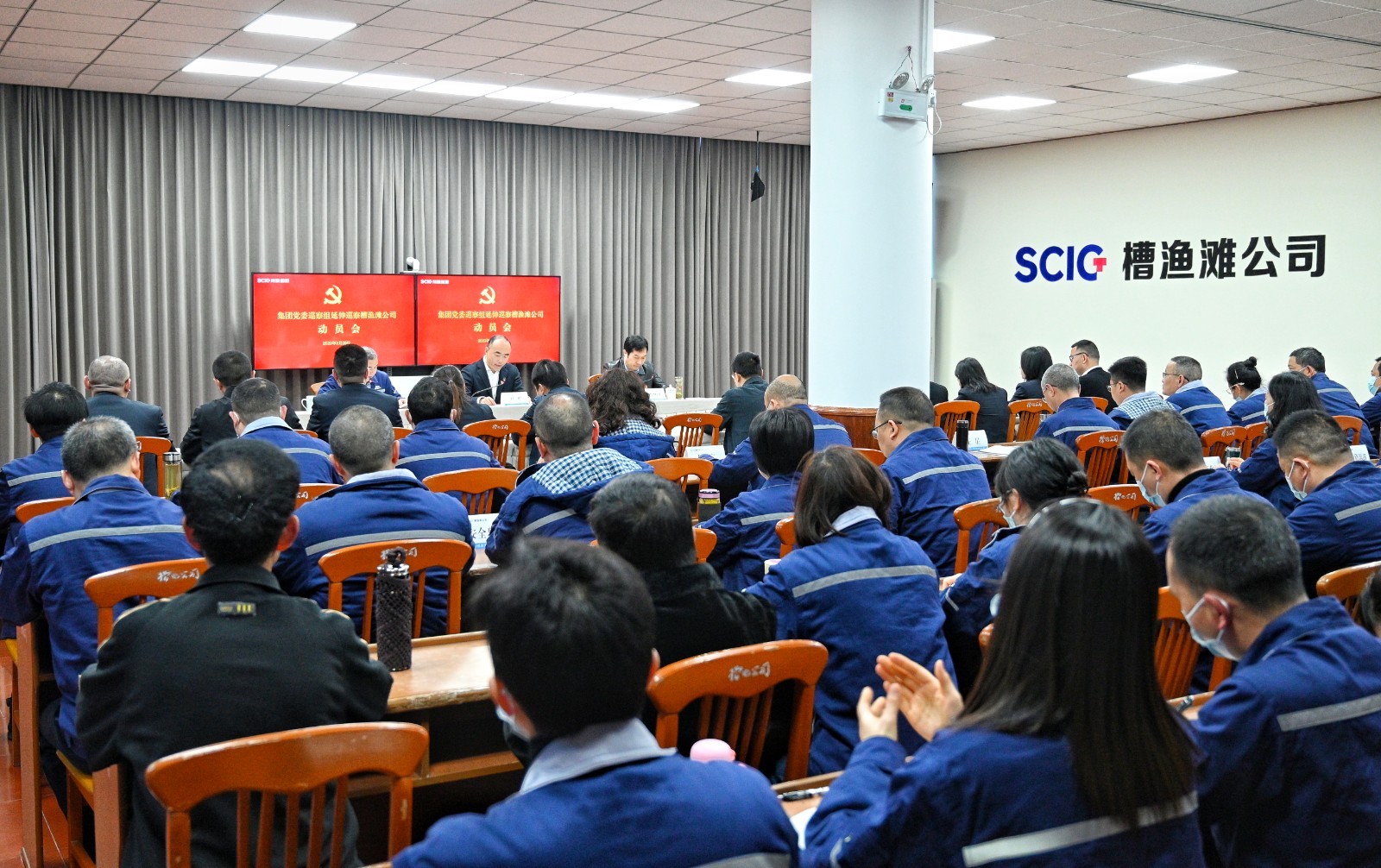 集團(tuán)黨委第一巡察組成員;槽漁灘公司領(lǐng)導(dǎo)班子成員、中層管理人員、黨員代表、退休人員代表參加會議。