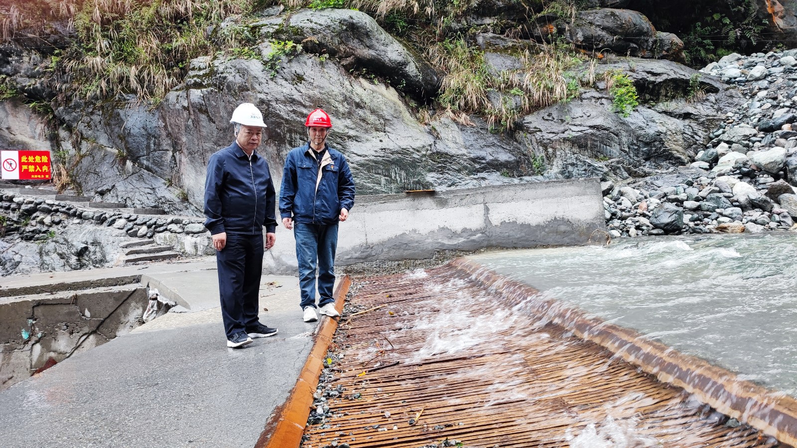 隨后,楊洪一行來到回龍溝底格欄柵壩取水口,檢查水毀工程修復(fù)和生態(tài)流量下泄情況。告誡值班人員加強(qiáng)巡視檢查,禁止游客進(jìn)入生產(chǎn)場(chǎng)所,嚴(yán)防人身傷害。