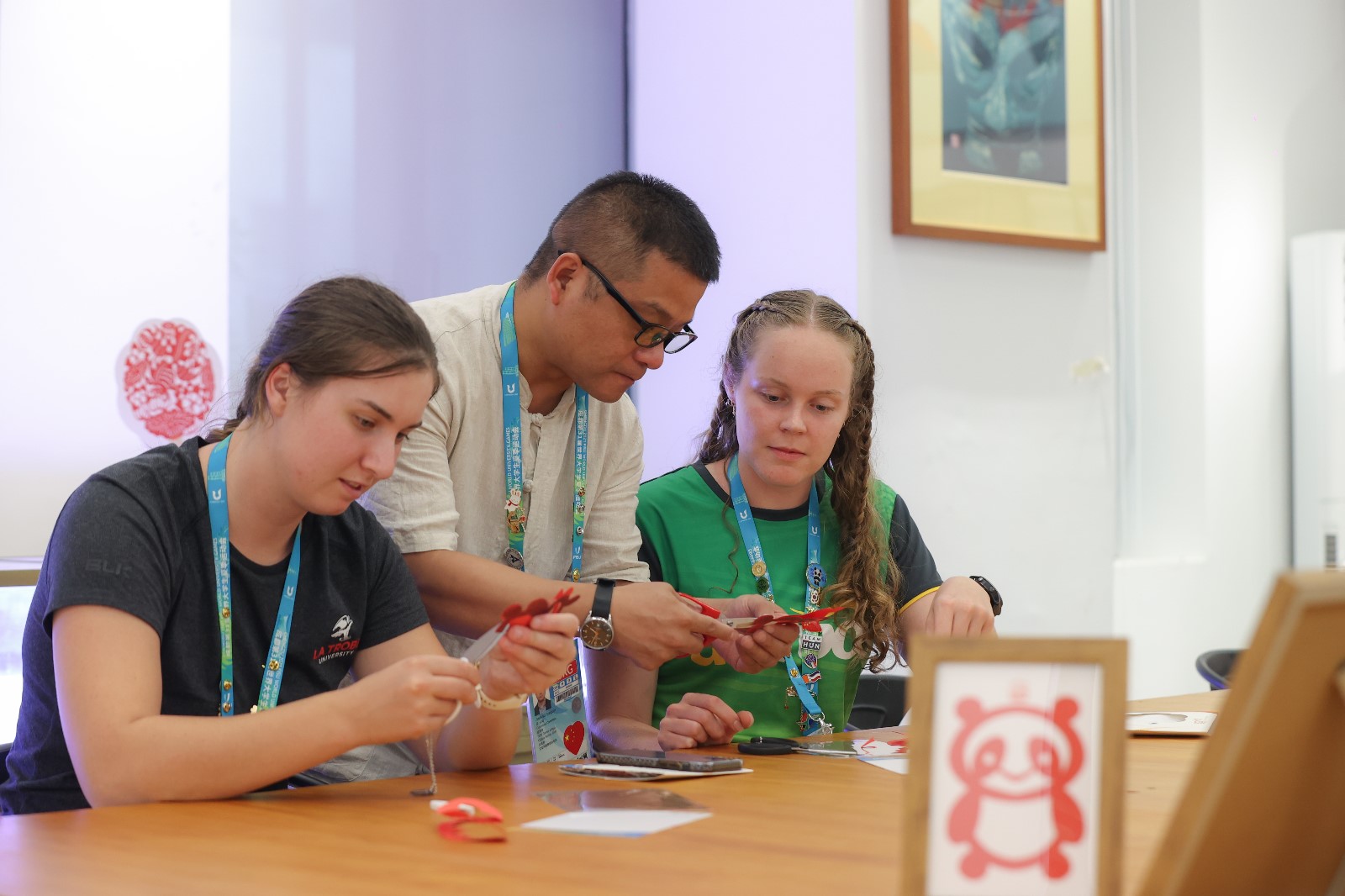 大運(yùn)會(huì)期間,成都大運(yùn)村里掀起一股“非遺熱”,引得各大媒體前來競(jìng)相報(bào)道?;?dòng)體驗(yàn)中心里,神奇的剪紙也吸引了中外運(yùn)動(dòng)員們紛紛前來參與體驗(yàn)。