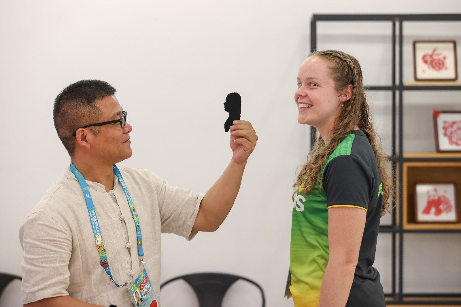 只見他的雙手揮舞不停,時(shí)不時(shí)抬頭看看運(yùn)動(dòng)員,短短2分鐘時(shí)間,運(yùn)動(dòng)員的側(cè)影神韻就被精準(zhǔn)勾勒出來,讓前來體驗(yàn)的運(yùn)動(dòng)員驚嘆不已。大運(yùn)會(huì)期間,莊叢燦共為各國700多名運(yùn)動(dòng)員“量身定制”剪影。