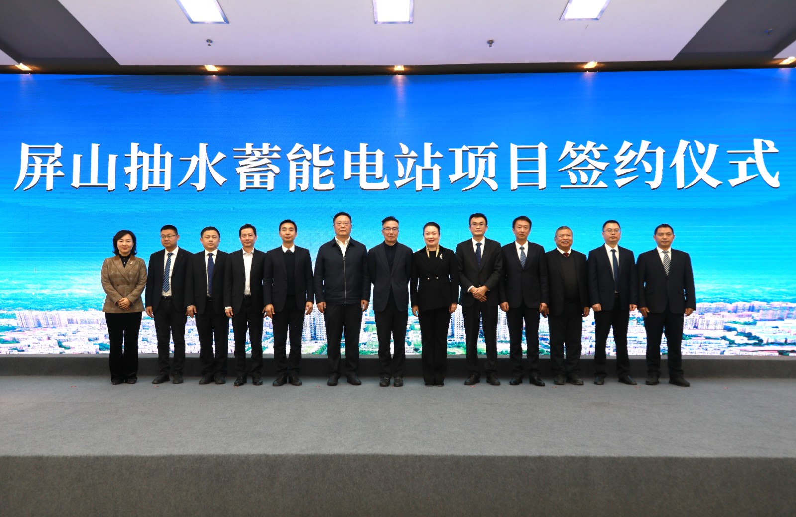 12月29日,屏山縣人民政府與四川川投能源股份有限公司、雅礱江水電開(kāi)發(fā)公司、葛洲壩集團(tuán)聯(lián)合體簽訂屏山抽水蓄能電站項(xiàng)目投資合作協(xié)議。川投集團(tuán)黨委書(shū)記、董事長(zhǎng),川投能源董事長(zhǎng)吳曉曦;川投集團(tuán)黨委副書(shū)記、副董事長(zhǎng)、總經(jīng)理李文志;宜賓市委副書(shū)記曾令舉;市政府副市長(zhǎng)周文宇;川投集團(tuán)副總經(jīng)理張昊;葛洲壩集團(tuán)三峽建設(shè)公司副總經(jīng)理許華;葛洲壩集團(tuán)市場(chǎng)投資開(kāi)發(fā)部副總經(jīng)理李博;中國(guó)電建集團(tuán)成勘院副總經(jīng)理鞠其鳳;川投能源黨委書(shū)記、副董事長(zhǎng)、總經(jīng)理?xiàng)詈?;川投集團(tuán)總經(jīng)理助理、戰(zhàn)投部部長(zhǎng)田傳平;雅礱江水電開(kāi)發(fā)公司副總工程師范林;市能源局副局長(zhǎng)邵睿;屏山縣委書(shū)記代軍;縣委副書(shū)記、縣長(zhǎng)趙丹;縣人大常委會(huì)主任冷遠(yuǎn)林;縣政協(xié)主席林敏;縣委副書(shū)記羅昕出席簽約儀式。