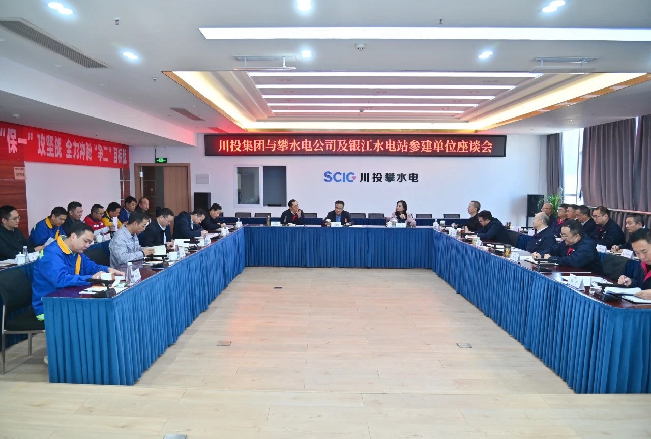隨后,吳曉曦一行座談聽取了項目工程建設、投產(chǎn)計劃、科研創(chuàng)新等情況匯報,充分肯定了工程項目的階段性成績,并向參建各方的辛勤付出表示感謝。他強調(diào),作為省級重點項目,銀江水電站承載著攀枝花市民的美好期待,高質(zhì)量建成投產(chǎn)達效意義重大。參建各方要千方百計保進度,密切配合、攻堅克難,確保年底首臺機組發(fā)電;要千方百計保質(zhì)量,堅持高標準、嚴要求,確保施工規(guī)范、質(zhì)量過硬,努力打造標桿工程;要千方百計保安全,壓緊壓實安全生產(chǎn)責任,落實落細安全防護措施,堅決遏制事故發(fā)生;要認真履行國企責任,杜絕拖欠和克扣農(nóng)民工工資,確保安全穩(wěn)定和諧。會上,朱莉?qū)Π踩h(huán)保、維穩(wěn)等工作作出具體安排。