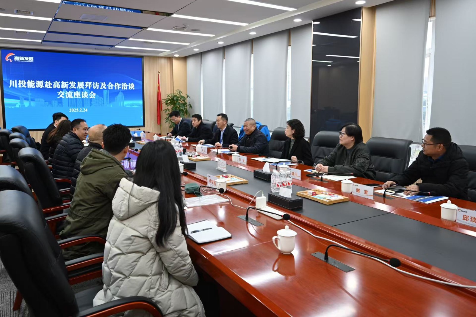 2月24日,川投能源黨委書(shū)記、副董事長(zhǎng)、總經(jīng)理?xiàng)詈槁赎?duì)拜訪成都高新發(fā)展股份有限公司,雙方就深化合作進(jìn)行座談交流。高新發(fā)展黨委書(shū)記、董事、總經(jīng)理馮東主持座談。