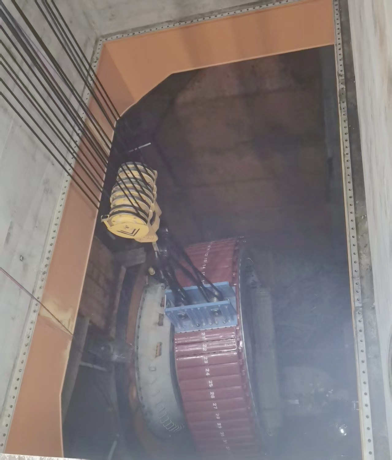 此次吊裝的6號(hào)機(jī)組轉(zhuǎn)子重量達(dá)230.5噸,直徑8.4米,是名副其實(shí)的“鋼鐵巨環(huán)”,其精準(zhǔn)就位對施工技術(shù)與安全保障提出極高要求。為確保吊裝萬無一失,所屬攀水電公司與參建各方做足了準(zhǔn)備,聯(lián)合開展多輪檢查,全面排查橋機(jī)、吊具等關(guān)鍵設(shè)備,同步組織技術(shù)交底和模擬演練,把安全措施落實(shí)到每個(gè)環(huán)節(jié)。吊裝過程中,這臺(tái)龐然大物在橋機(jī)手的精準(zhǔn)操控下平穩(wěn)起吊、緩緩移動(dòng),最終以毫米級精度穩(wěn)穩(wěn)落入機(jī)坑,與發(fā)電機(jī)大軸精準(zhǔn)對接。全程監(jiān)測數(shù)據(jù)顯示所有參數(shù)均符合設(shè)計(jì)標(biāo)準(zhǔn),本次吊裝任務(wù)圓滿完成。