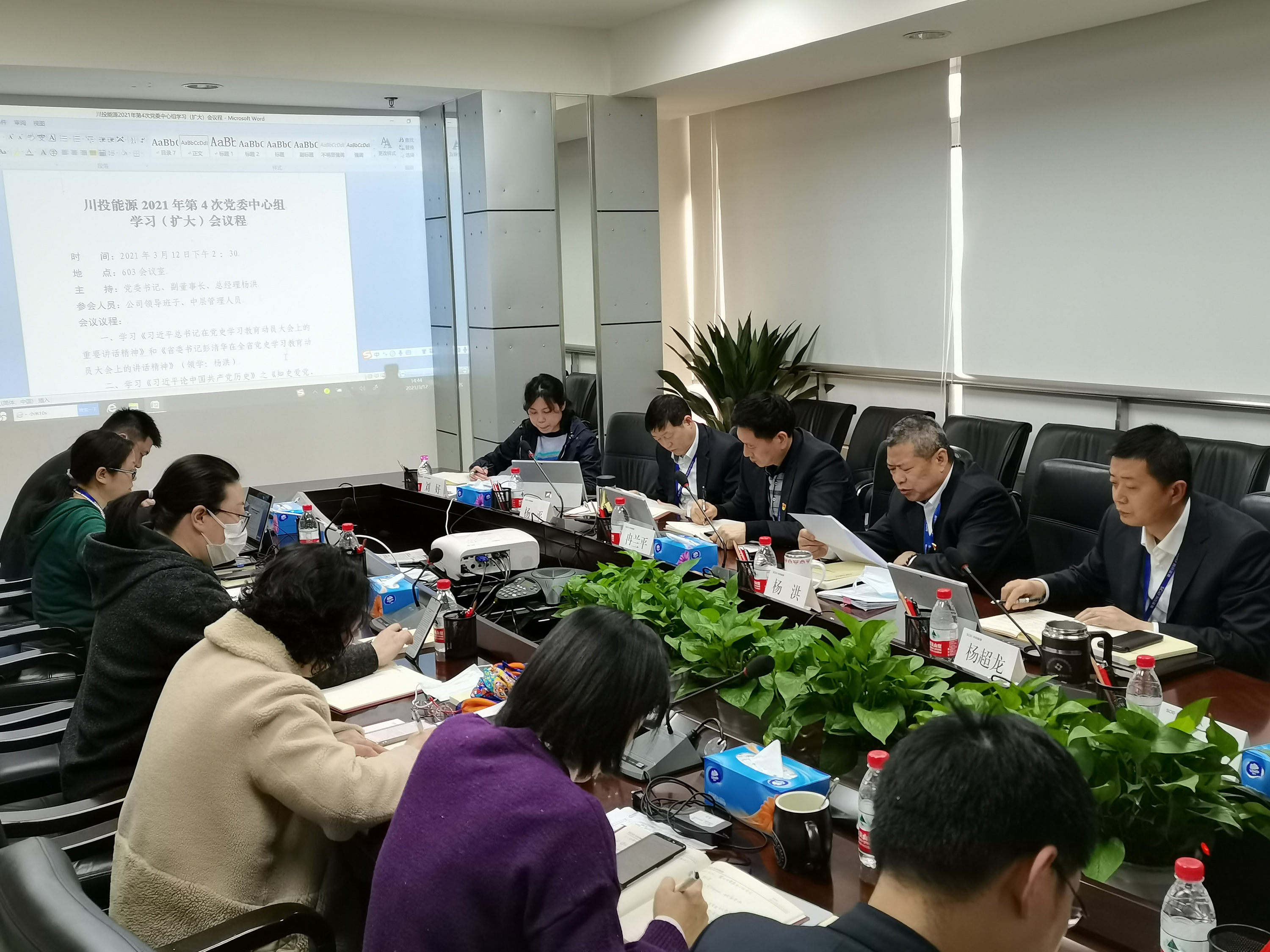 3月12日,川投能源召開黨委理論學習中心組學習(擴大)會議,傳達習近平總書記在黨史學習教育動員大會上的重要講話精神和省委書記彭清華在全省黨史學習教育動員大會上的講話精神,并集中學習《習近平論中國共產(chǎn)黨歷史》之《知史愛黨、知史愛國》篇章。公司黨委書記、副董事長、總經(jīng)理楊洪主持會議并帶頭領學。公司領導班子成員、各部門負責人參加學習。