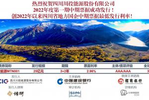 川投能源成功發(fā)行25億元中期票據(jù)創(chuàng)2022年以來四川省地方國企中期票據(jù)最低發(fā)行利率