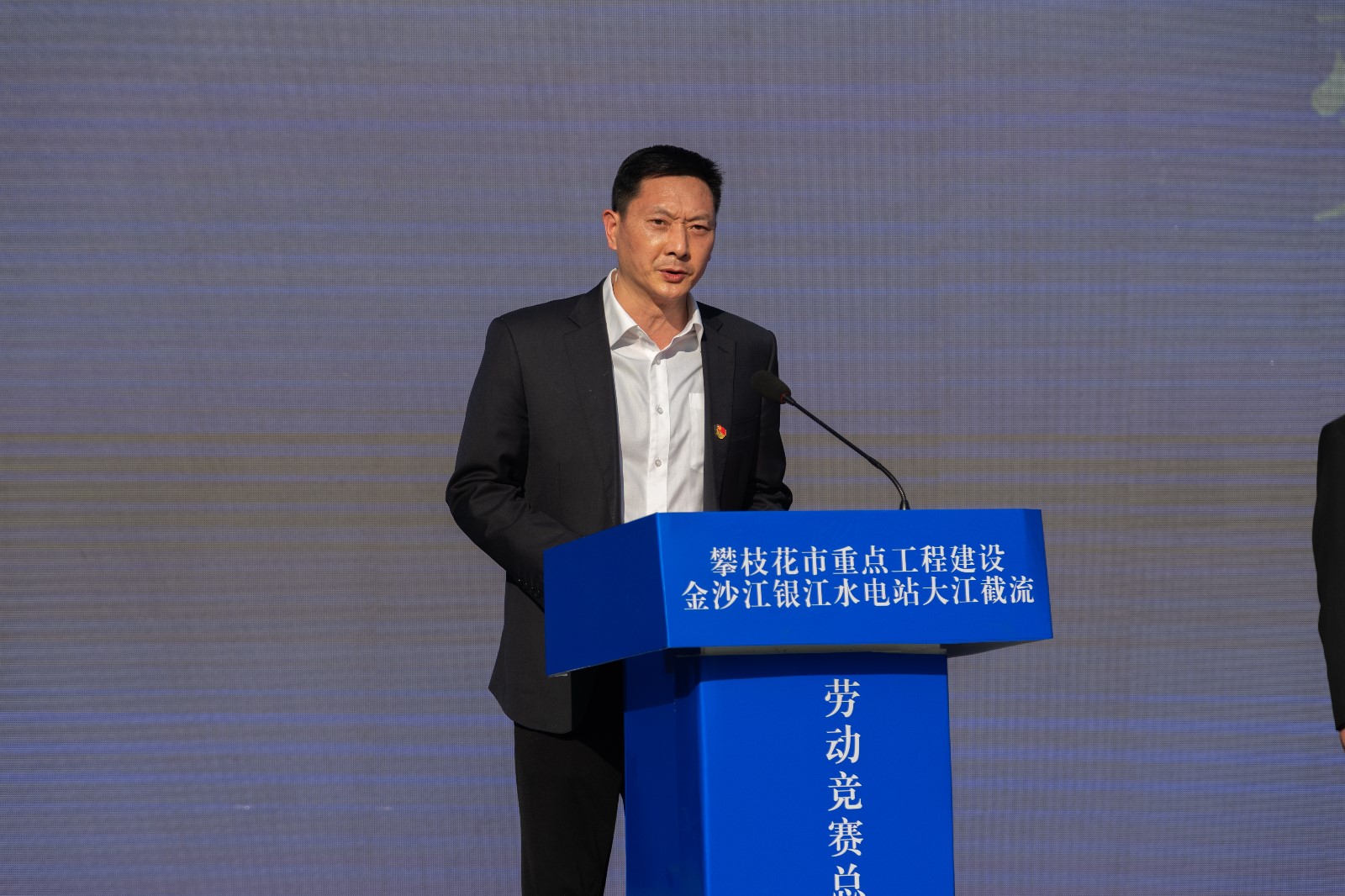 表彰會(huì)上,冉蘭平作了重要講話,他指出,截流攻堅(jiān)戰(zhàn)的勝利,是全體參建單位和參賽職工上下一心、精誠團(tuán)結(jié)、主動(dòng)作為、奮力拼搏的結(jié)果,為繼續(xù)充分發(fā)揮勞動(dòng)競賽的引領(lǐng)、示范、帶動(dòng)作用,一是長風(fēng)破浪,在繼往開來中發(fā)揚(yáng)新三線精神。新三線精神是攀枝花市重點(diǎn)工程建設(shè)者們的寶貴精神財(cái)富,銀江水電站未來的發(fā)展,更需要讓新三線精神發(fā)揚(yáng)光大;二是和衷共濟(jì),在躍馬揚(yáng)鞭中匯聚銀江力量。在大江截流攻堅(jiān)戰(zhàn)中,大家戰(zhàn)勝重重困難,是勠力同心的成果,銀江水電站的高質(zhì)量建設(shè),更需要匯聚共同的力量成為銀江力量;三是不忘初心,在時(shí)代浪潮中打造銀江品牌。在銀江水電站這個(gè)特殊的戰(zhàn)場,各單位要堅(jiān)守初心、共擔(dān)使命,為將銀江水電站建設(shè)成“精品工程、樣板工程、陽光工程”而努力奮斗,為川投集團(tuán)、川投能源高質(zhì)量發(fā)展作出新的更大貢獻(xiàn),以優(yōu)異的成績迎接黨的二十大勝利召開。