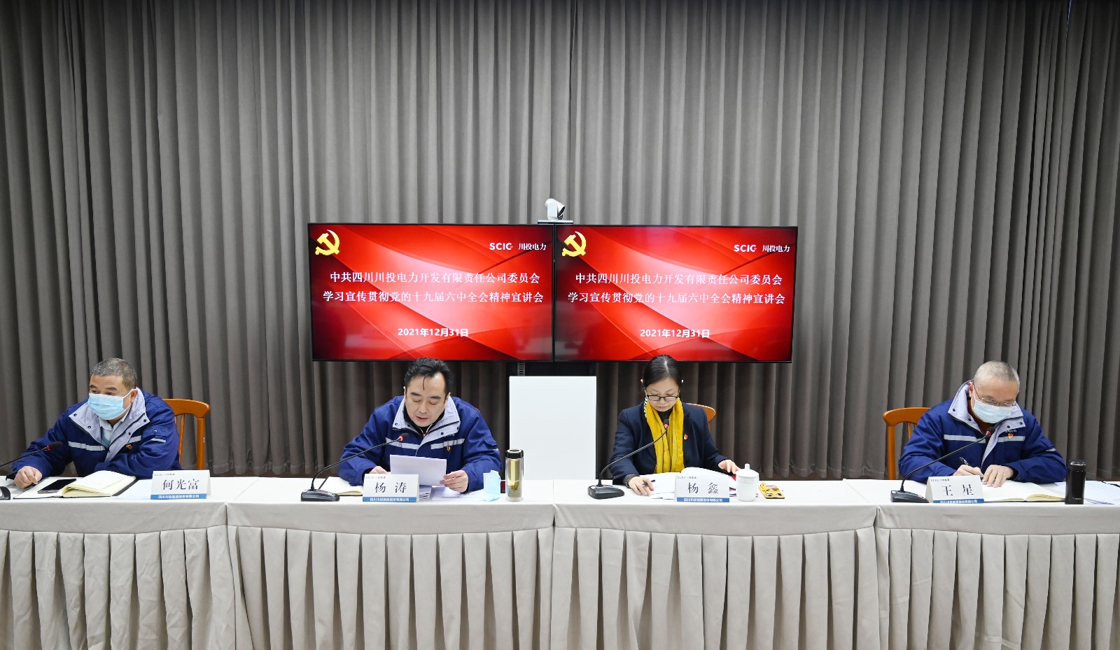 2021年12月31日,川投電力公司黨委在洪雅槽漁灘公司召開(kāi)“學(xué)習(xí)宣傳貫徹黨的十九屆六中全會(huì)精神宣講會(huì)”。川投電力黨委書(shū)記、董事長(zhǎng)楊濤在會(huì)上就十九屆六中全會(huì)精神作了專題宣講;宣講會(huì)由川投電力黨委副書(shū)記楊鑫主持。