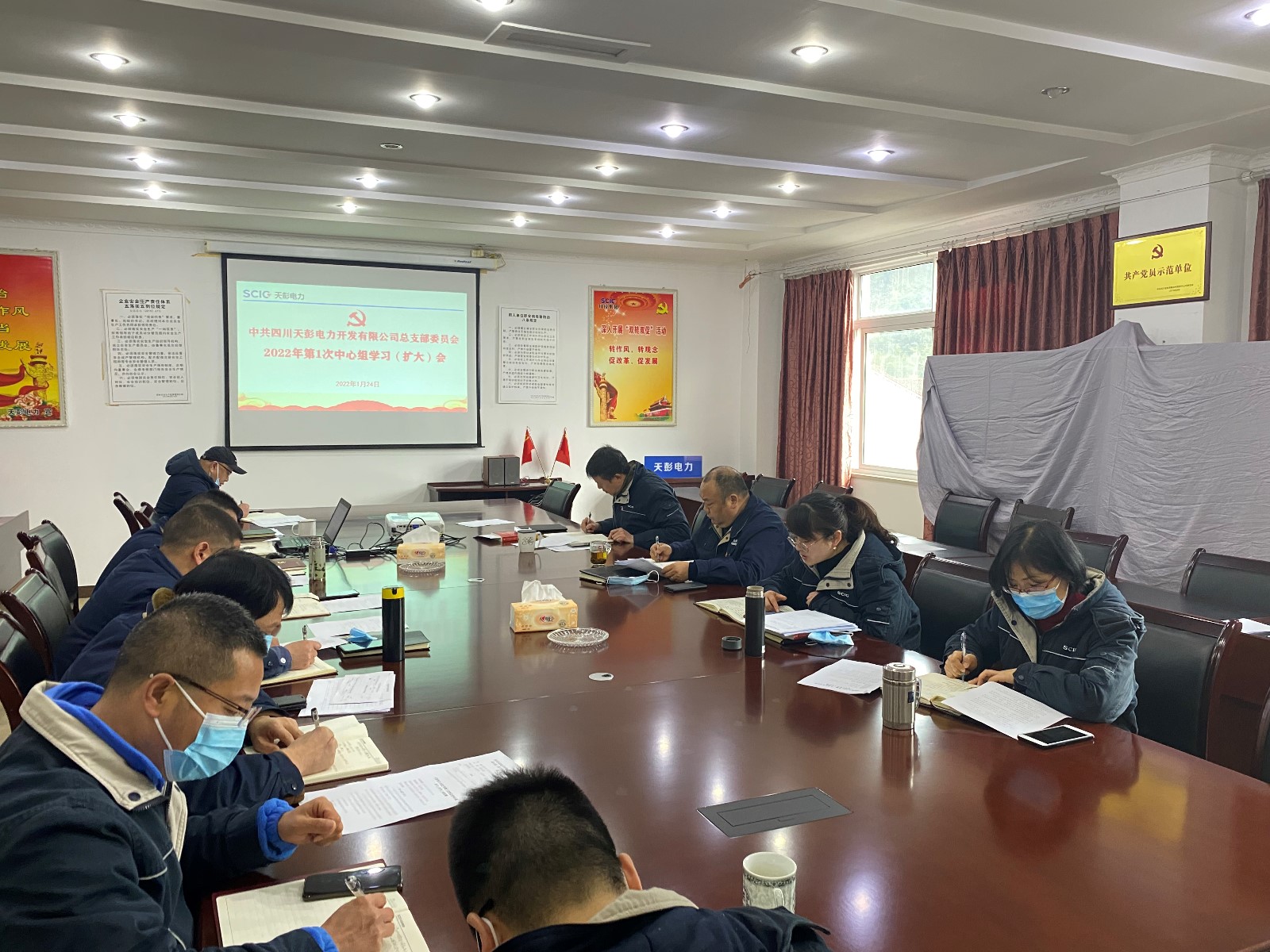 1月24日上午,天彭電力黨總支在公司二樓會(huì)議室召開(kāi)2022年第1次中心組學(xué)習(xí)(擴(kuò)大)會(huì),公司領(lǐng)導(dǎo)、黨員干部、關(guān)鍵崗位人員參加會(huì)議,會(huì)議由公司黨總支書(shū)記、董事長(zhǎng)、總經(jīng)理陳忠主持。