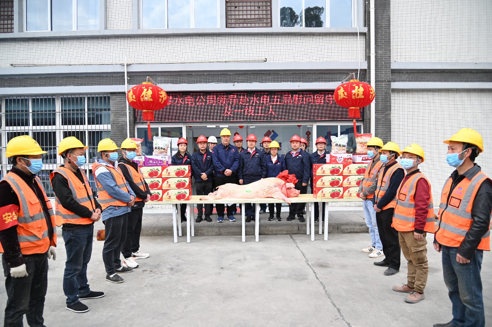 金牛昂首高歌去,玉虎迎春斂福來。2022年1月31日除夕上午,帶著新春的美好祝福與親切關(guān)懷,受川投能源副總經(jīng)理、攀水電公司黨總支書記、董事長徐孝剛委托,公司黨總支委員、總經(jīng)理吳巍嶼,黨總支委員、紀檢小組長、總經(jīng)理助理楊銳帶領(lǐng)公司值班人員、志愿者服務(wù)隊十余人來到水電五局項目部、水電七局項目部、貴陽院監(jiān)理部等參建單位,看望慰問春節(jié)期間依然堅守在銀江水電站工程建設(shè)一線的參建單位員工。