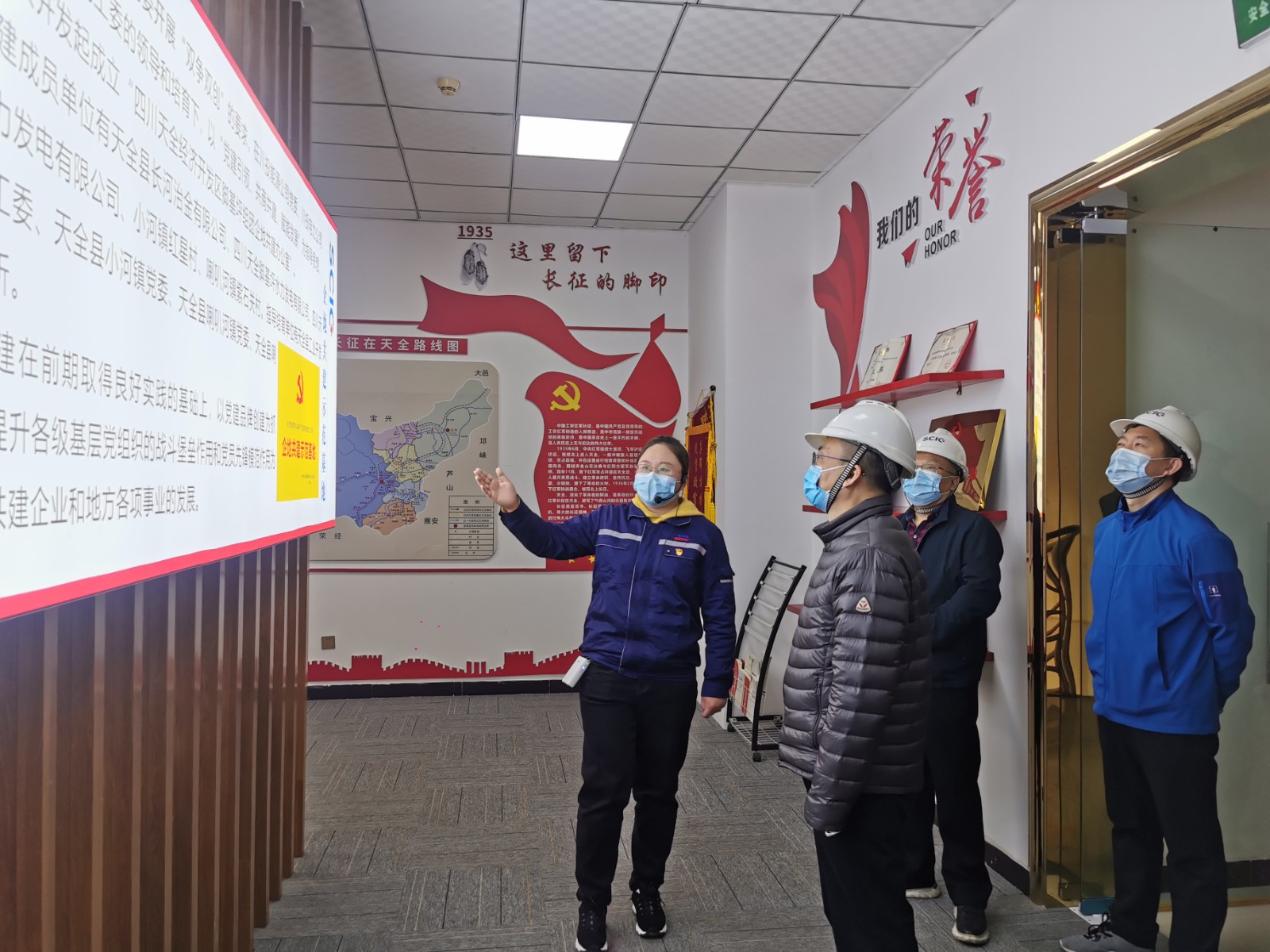 在天全河流域所屬腳基坪電廠熱火朝天的2號機組A級機組檢修現(xiàn)場,孫前元一行聽取了腳基坪電廠自主檢修組織機構(gòu)、檢修安全管理、檢修現(xiàn)場施工情況等方面情況的匯報;隨后,到腳基坪電廠“企地共建示范基地”黨建室進(jìn)行參觀。