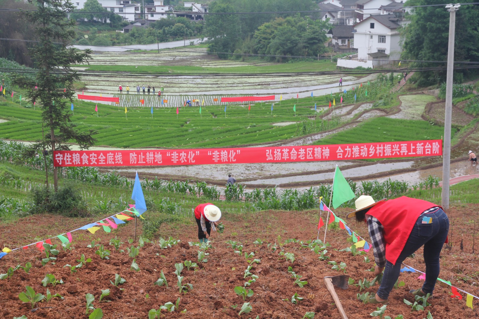 習(xí)近平總書記指出:糧食安全是“國之大者”。5月30日,正值春播春種之際,由天全縣農(nóng)業(yè)農(nóng)村局、鄉(xiāng)村振興局、衛(wèi)生健康局、仁義鎮(zhèn)人民政府主辦,縣仁義鎮(zhèn)紅軍村、腳基坪電廠承辦,川投能源所屬川投電力公司協(xié)辦的首屆川投能源、天全縣“企地共建杯”農(nóng)業(yè)勞動(dòng)技能大賽在紅色故里──天全縣仁義鎮(zhèn)紅軍村拉開帷幕。縣仁義鎮(zhèn)黨委書記桑朝東主持開幕式并致詞,縣人大常委會(huì)副主任彭武到會(huì)宣布開幕,川投電力黨委書記、董事長楊濤宣布比賽規(guī)則。