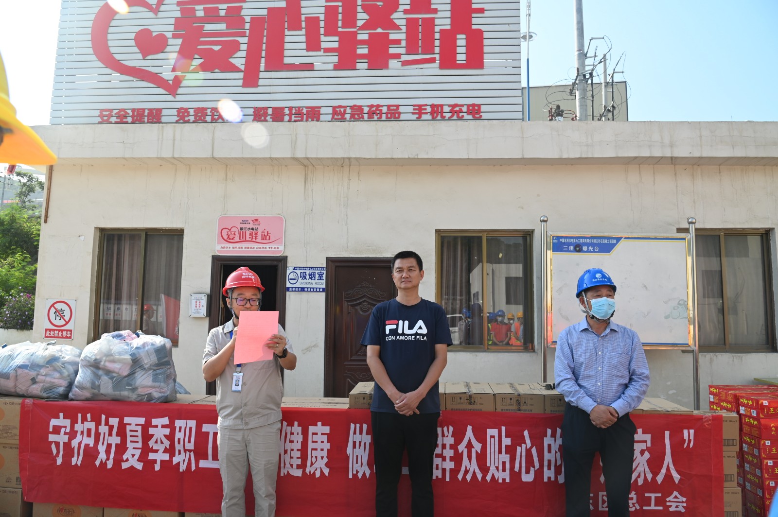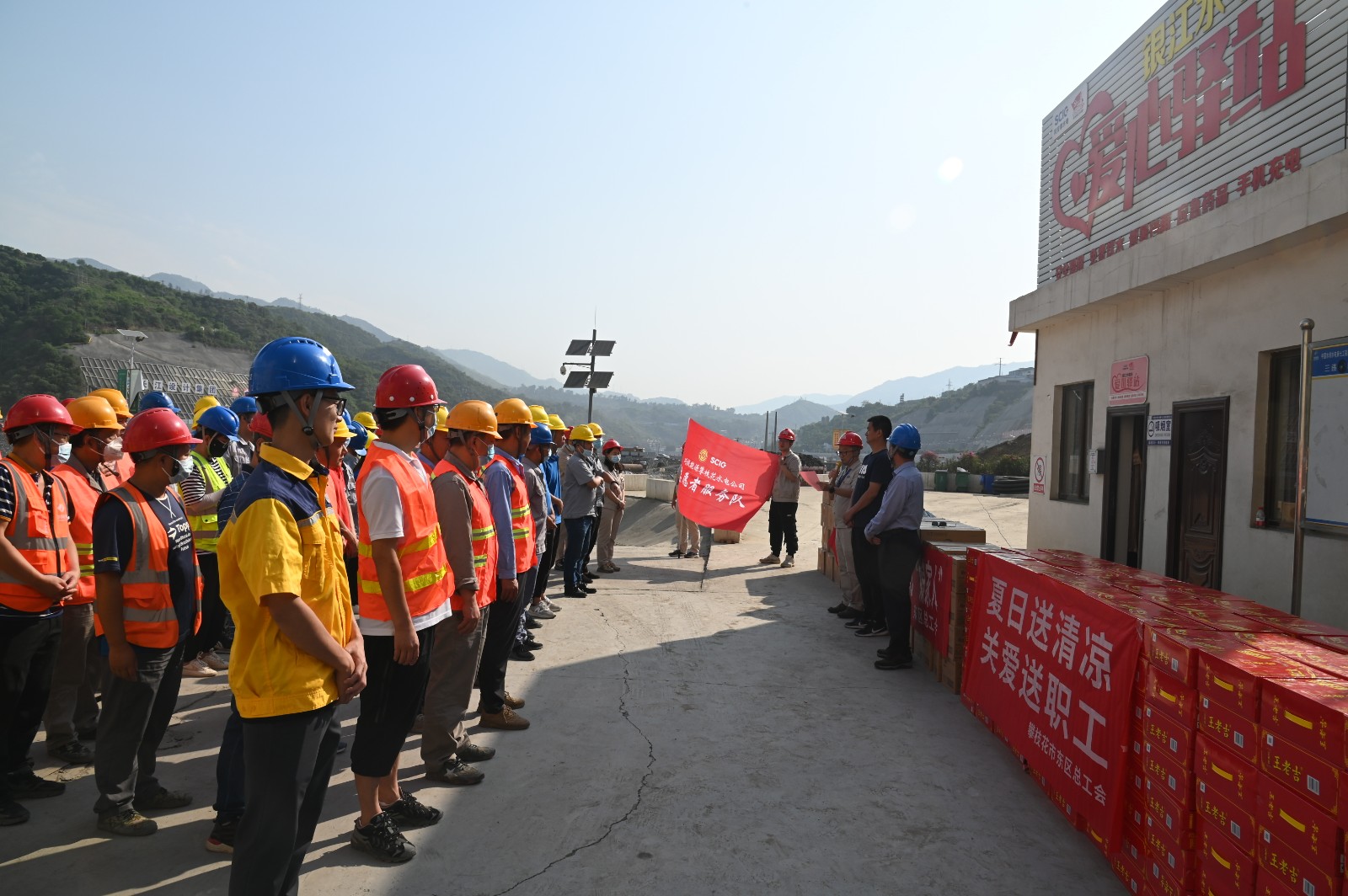 夏日送清涼,溫情暖心坎。本次活動為在烈日“烤”驗(yàn)下辛勤勞作的工友們送上清涼飲料、沐浴露、洗衣液、毛巾、紙巾等防暑降溫物資300余份,參建單位長江設(shè)計(jì)、貴陽院監(jiān)理、二灘建設(shè)監(jiān)理、華東院環(huán)水保監(jiān)理、水電五局、水電七局、水電十局、四川路橋等工友代表接受慰問。通過此次慰問活動,工友們在炎炎酷暑中感受到了深深的關(guān)愛和舒心的涼意,大大激發(fā)了工作熱情,大家紛紛表示不懼艱難不怕高溫,將以更加堅(jiān)定飽滿的“銀江精神”投身于工程建設(shè),以實(shí)際行動和工作成效向黨的二十大交出滿意的“銀江答卷”。