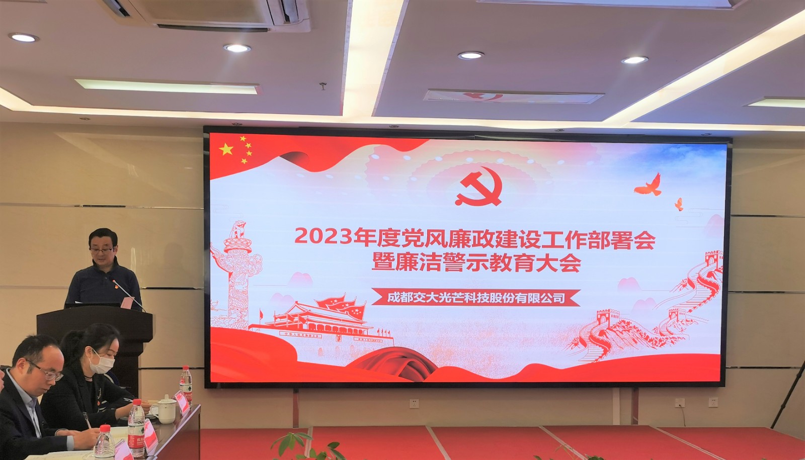 為進一步貫徹落實黨的二十大關于全面從嚴治黨戰(zhàn)略部署,深入推進公司黨風廉政和反腐敗工作。2月3日,交大光芒召開2023年度黨風廉政建設工作部署會暨廉潔警示教育大會,公司領導班子成員、中層副職以上管理人員、黨員參加會議。公司黨總支書記、總經(jīng)理劉成輝主持會議并作廉潔警示談話。