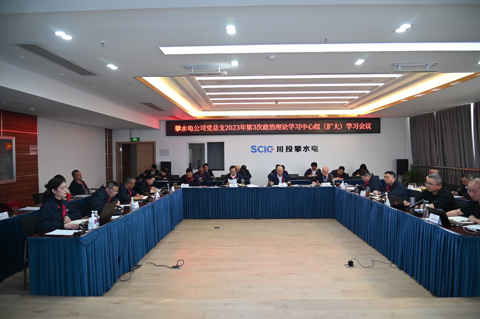 為進(jìn)一步嚴(yán)肅黨內(nèi)政治生活,提高攀水電公司、攀新能源公司2022年度組織生活會質(zhì)量,3月1日,攀水電公司黨總支在2620會議室組織召開了2023年第3次政治理論中心組學(xué)習(xí)(擴(kuò)大)專題學(xué)習(xí)會議,本次學(xué)習(xí)內(nèi)容主要包括“第一議題”和組織生活會專題兩個部分。會議由川投能源副總經(jīng)理、攀水電公司黨總支書記、董事長徐孝剛主持,攀水電公司黨總支中心組成員、支部書記、其他黨員、非黨干部、入黨積極分子共30余人參加學(xué)習(xí)。