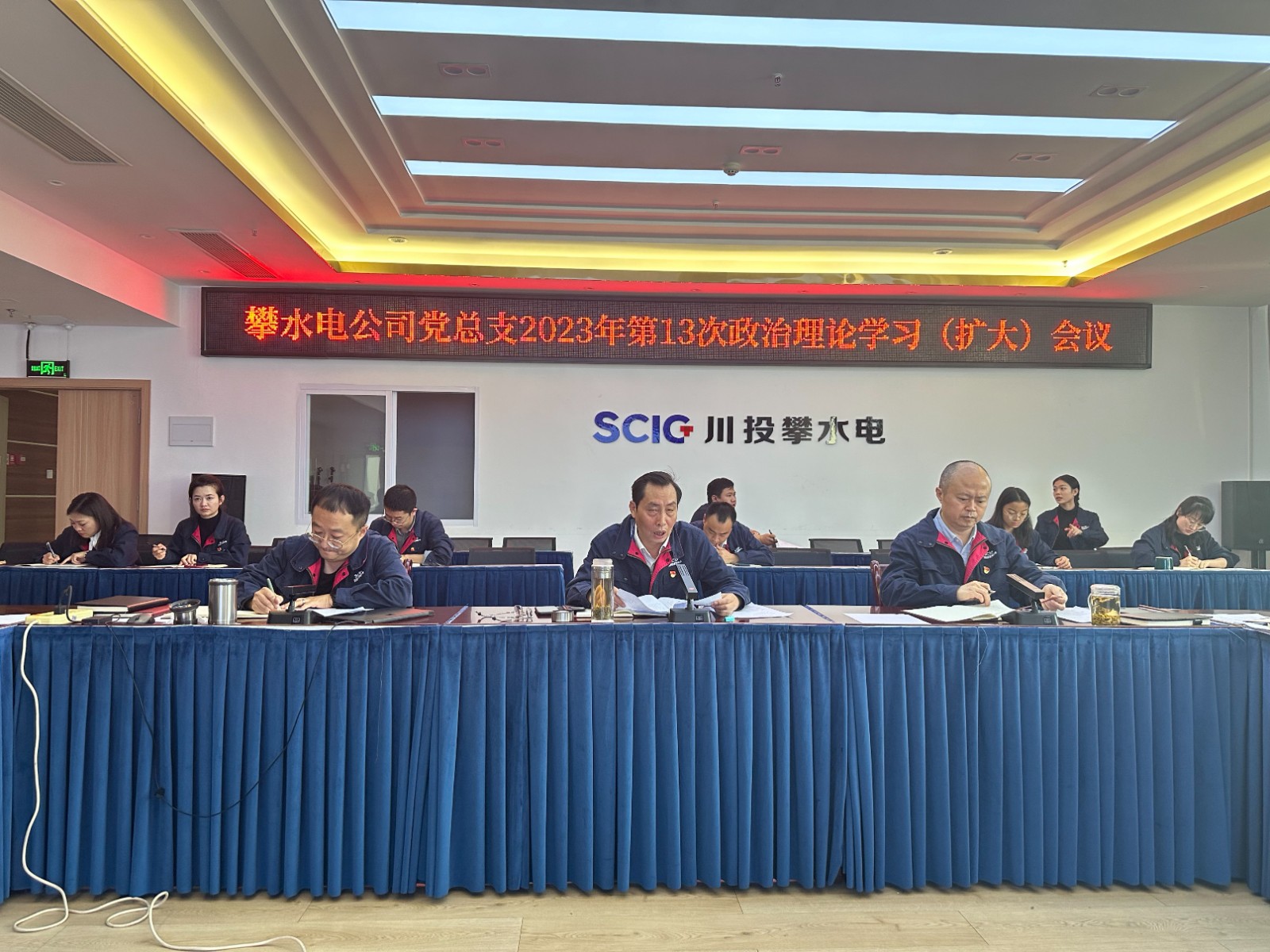 11月28日,公司黨總支在2620會(huì)議室召開(kāi)了2023年第13次政治理論學(xué)習(xí)(擴(kuò)大)會(huì)議,會(huì)議由川投能源副總經(jīng)理,攀水電公司黨總支書(shū)記、董事長(zhǎng)徐孝剛主持,黨總支政治理論學(xué)習(xí)會(huì)成員、全體中干、支部書(shū)記、其他黨員、入黨積極分子共30余人參加學(xué)習(xí)。