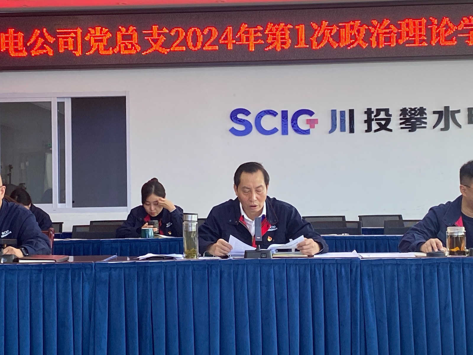 1月27日下午,攀水電黨總支在2620會(huì)議室召開了2024年第1次政治理論學(xué)習(xí)(擴(kuò)大)會(huì)議,本次學(xué)習(xí)主要包括第一議題學(xué)習(xí)、上級(jí)文件精神、統(tǒng)戰(zhàn)工作、安全環(huán)保、廉政警示教育、分享式領(lǐng)學(xué)六個(gè)部分。會(huì)議由川投能源副總經(jīng)理、攀水電公司黨總支書記、董事長徐孝剛主持,黨總支政治理論學(xué)習(xí)會(huì)成員、全體中干、支部書記、其他黨員、統(tǒng)戰(zhàn)對(duì)象、入黨積極分子共30余人參加。