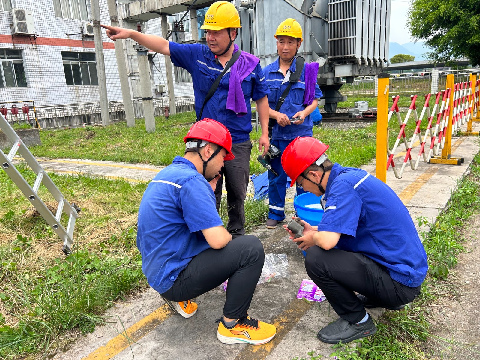 為了進一步提高供電設(shè)備的健康水平,保證電網(wǎng)安全穩(wěn)定運行和供電可靠性,5月25日至27日高奉山電廠安排了110kv魚天線和110KV升壓站全站停電,對升壓站內(nèi)的電氣設(shè)備進行隱患排查、設(shè)備消缺、技改和預(yù)試工作。