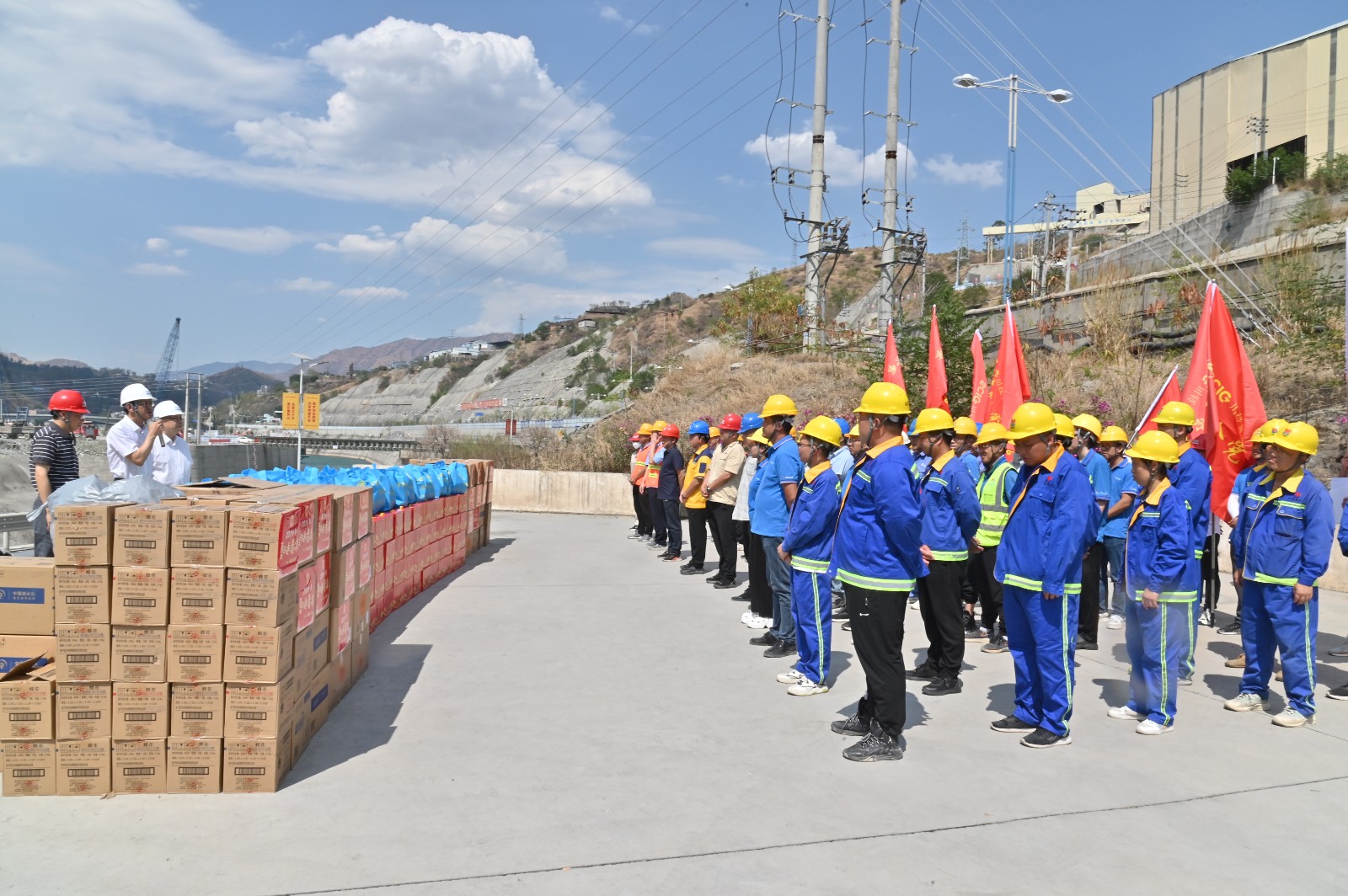 隨后,凌永航一行向銀江水電站現(xiàn)場各參建單位的一線工友們送上了清涼飲品、洗衣液、洗發(fā)露等400余份清涼物資,叮囑工友在烈日烘烤的工作中,一定要全面做好各類防護措施,注意防暑降溫,合理安排工作時間,注意自身安全和健康。