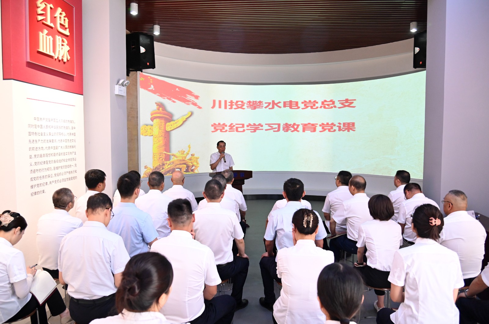 為推動黨紀學習教育走深走實,引導黨員干部從反面典型中汲取深刻教訓,從先進人物里吸收浩然正氣,不斷筑牢拒腐防變思想道德防線,6月19日,攀水電公司黨總支組織到攀鋼反腐倡廉教育展覽館開展集中廉潔教育培訓活動,公司領導班子成員、中干以及各支部書記、紀檢委員,各參建單位代表等計30余人參加。