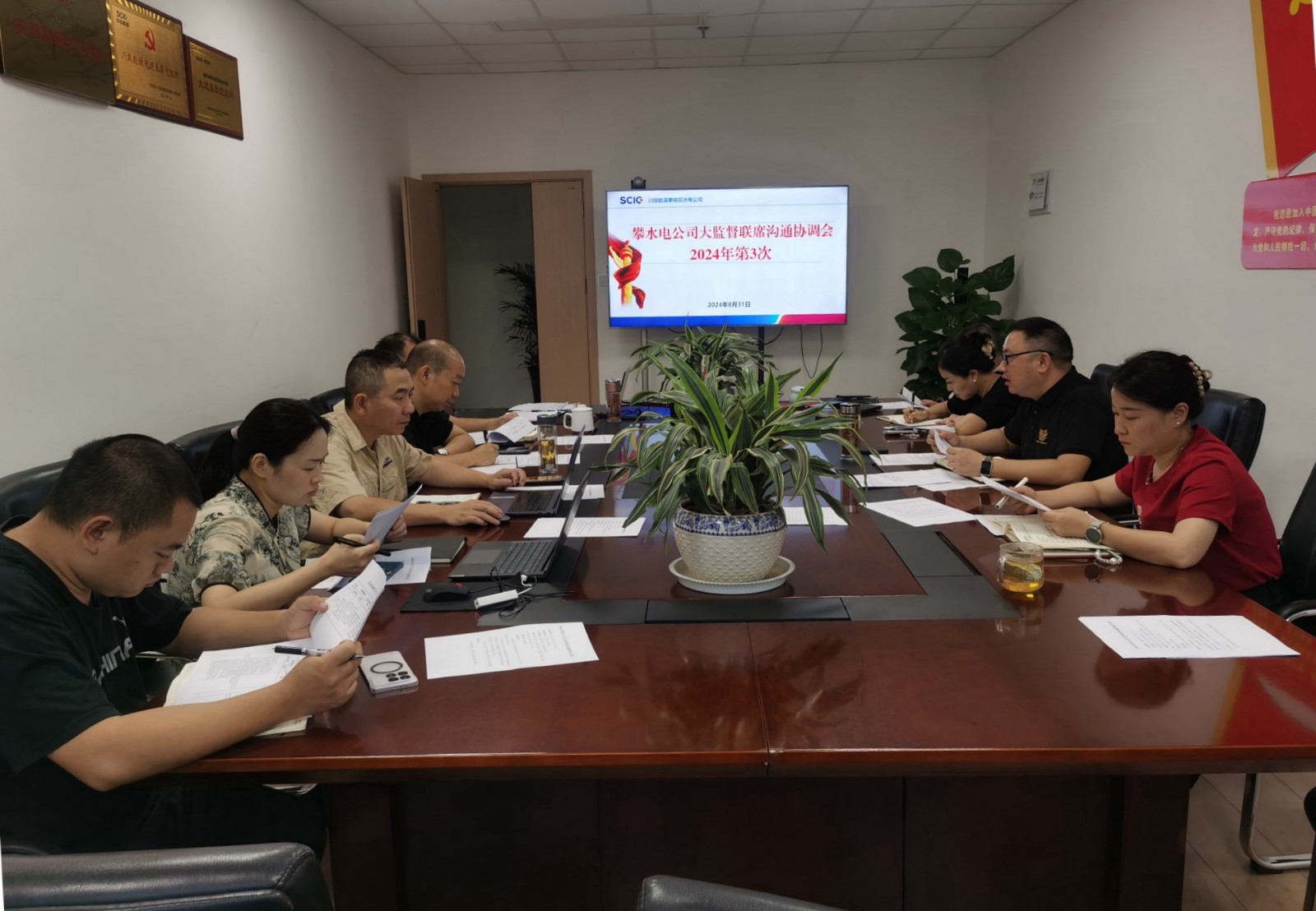 近日,攀水電公司紀(jì)檢小組組織召開2024年第3次大監(jiān)督聯(lián)席溝通協(xié)調(diào)會,會議由公司黨總支委員、紀(jì)檢小組長楊銳主持,公司中干、部門員工共計12人參加會議。