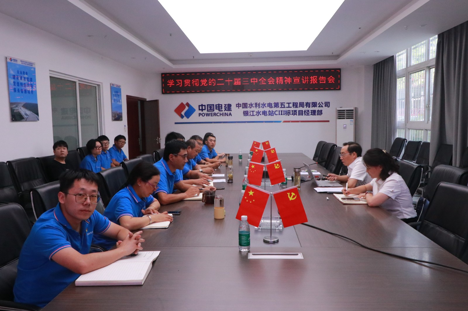 為深入學(xué)習(xí)宣傳貫徹黨的二十屆三中全會(huì)精神,按照川投能源黨委的部署和攀水電公司黨總支的安排,近日,川投能源副總經(jīng)理、公司黨總支書(shū)記、董事長(zhǎng)徐孝剛到聯(lián)系指導(dǎo)支部水電五局銀江項(xiàng)目黨支部進(jìn)行黨的二十屆三中全會(huì)精神專(zhuān)題宣講。水電五局銀江項(xiàng)目黨支部全體黨員、入黨積極分子、青年職工代表共計(jì)15人參加此次宣講報(bào)告會(huì)。