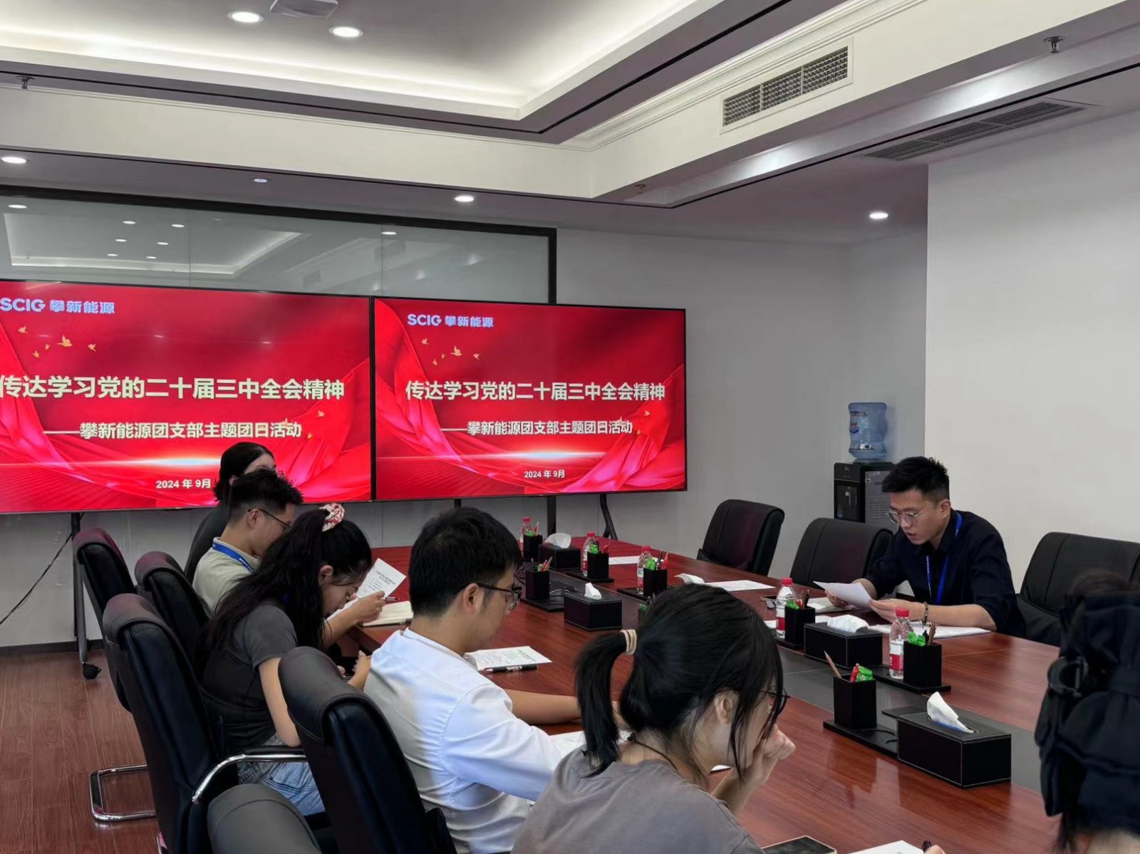 近日,攀新能源公司團支部在川投大廈707會議室舉行2024年9月主題團日活動,專題傳達學習《中國共產(chǎn)黨第二十屆中央委員會第三次全體會議公報》,學習貫徹黨的二十屆三中全會精神。攀新能源團支部書記、經(jīng)營管理部經(jīng)理潘鑫主持并領(lǐng)學,公司全體團員及屏山抽蓄公司全體團員參會。
