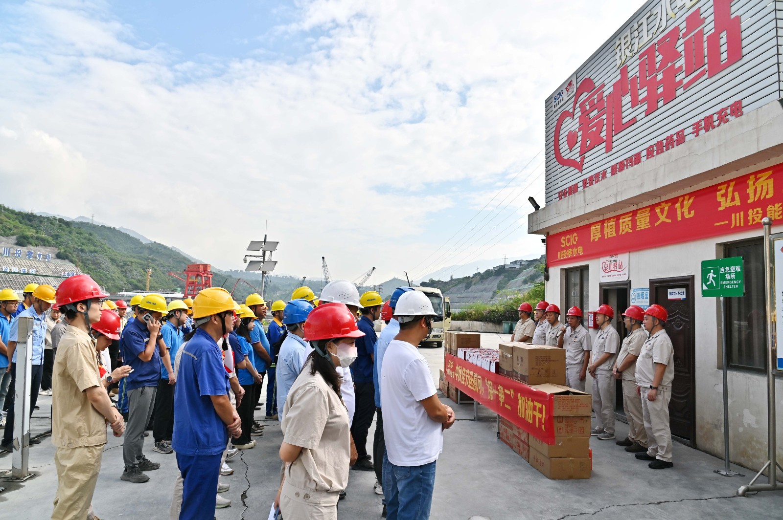 徐孝剛代表川投能源和攀水電公司,向堅(jiān)守崗位、辛勤付出、無私奉獻(xiàn)的一線職工表示衷心的感謝,叮囑他們做好防護(hù),注意安全。他指出,在學(xué)習(xí)宣傳貫徹黨的二十屆三中全會精神之際,銀江水電站正值實(shí)現(xiàn)蓄水發(fā)電目標(biāo)的關(guān)鍵節(jié)點(diǎn),面對工程建設(shè)工期緊、任務(wù)重的雙重挑戰(zhàn),各參建單位要持續(xù)發(fā)揚(yáng)“特別能吃苦、特別能戰(zhàn)斗、特別能奉獻(xiàn)”的銀江精神,團(tuán)結(jié)協(xié)作、密切配合,進(jìn)一步加強(qiáng)溝通協(xié)調(diào),形成工作合力,共同解決工程建設(shè)中遇到的困難和問題,抓好工程建設(shè)、安全環(huán)保、質(zhì)量和進(jìn)度,讓每一個環(huán)節(jié)都經(jīng)得起歷史和人民的檢驗(yàn),奮力實(shí)現(xiàn)蓄水發(fā)電目標(biāo),交上一份滿意的銀江答卷,向祖國75周歲華誕獻(xiàn)上川投賀禮。