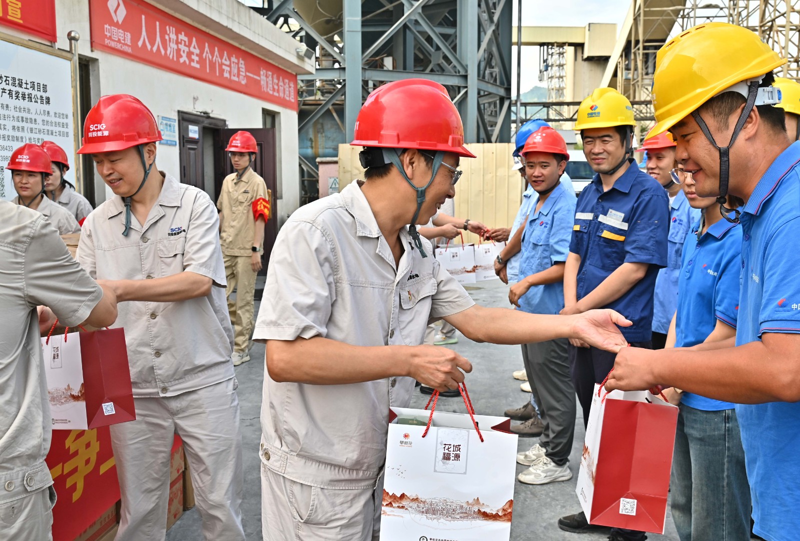 9月17日,正值萬家團(tuán)圓的中秋佳節(jié),而銀江水電站工地依舊機(jī)器轟鳴,一派熱火朝天的繁忙景象。川投能源副總經(jīng)理、攀水電公司黨總支書記、董事長徐孝剛帶領(lǐng)攀水電公司領(lǐng)導(dǎo)班子全體成員來到愛心驛站,為1200余名建設(shè)者送上香甜的月餅和清香的涼茶,向他們表達(dá)深切慰問與崇高敬意。