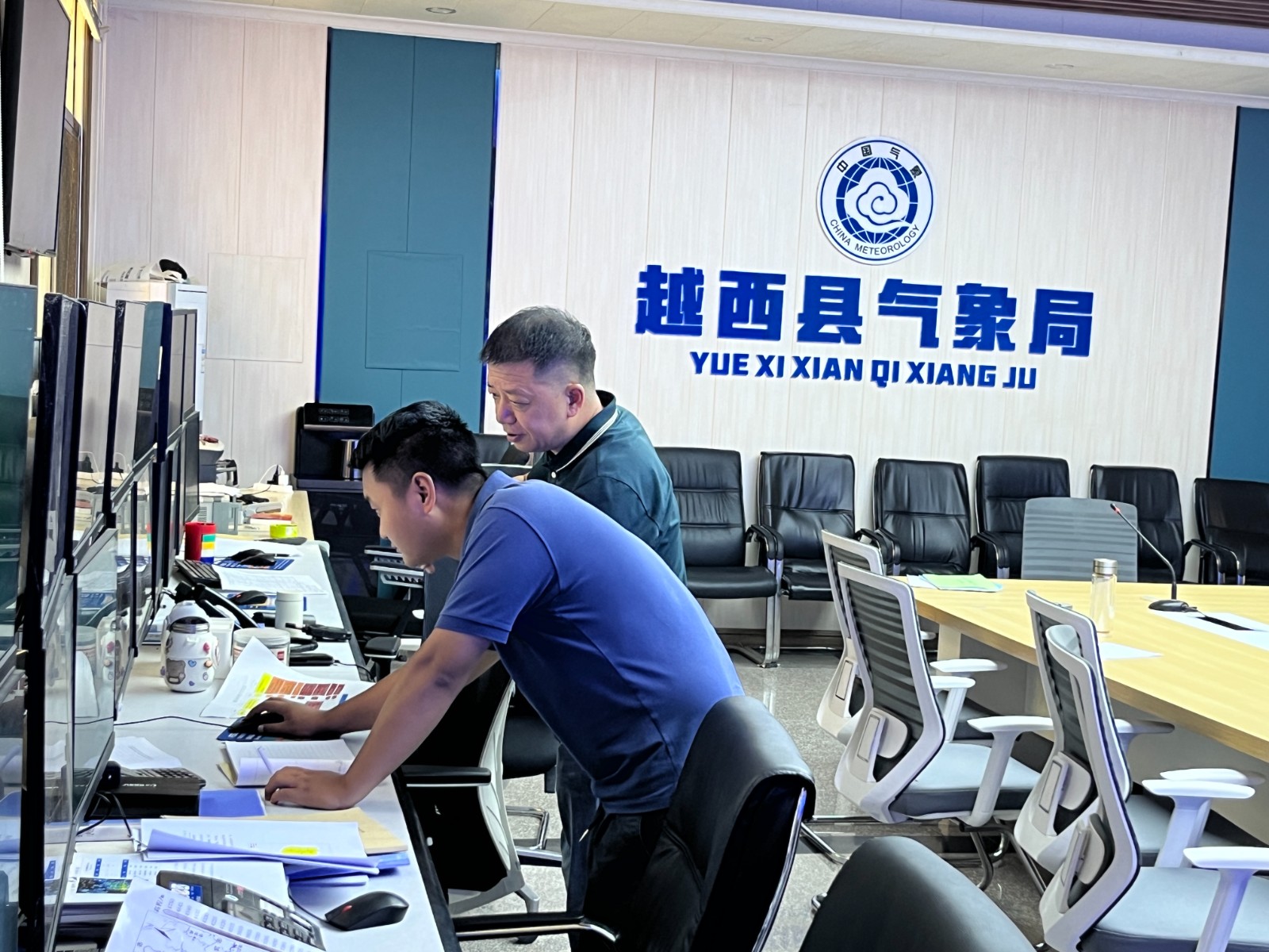進(jìn)入越西縣氣象局,葉勁馳一行進(jìn)入越西縣國(guó)家氣象站、縣氣象服務(wù)中心,實(shí)地查看了越西縣雨情信息收集系統(tǒng),深入了解預(yù)警信息制作、發(fā)布和氣象數(shù)據(jù)的采集、傳輸、處理等全流程信息化建設(shè)情況。