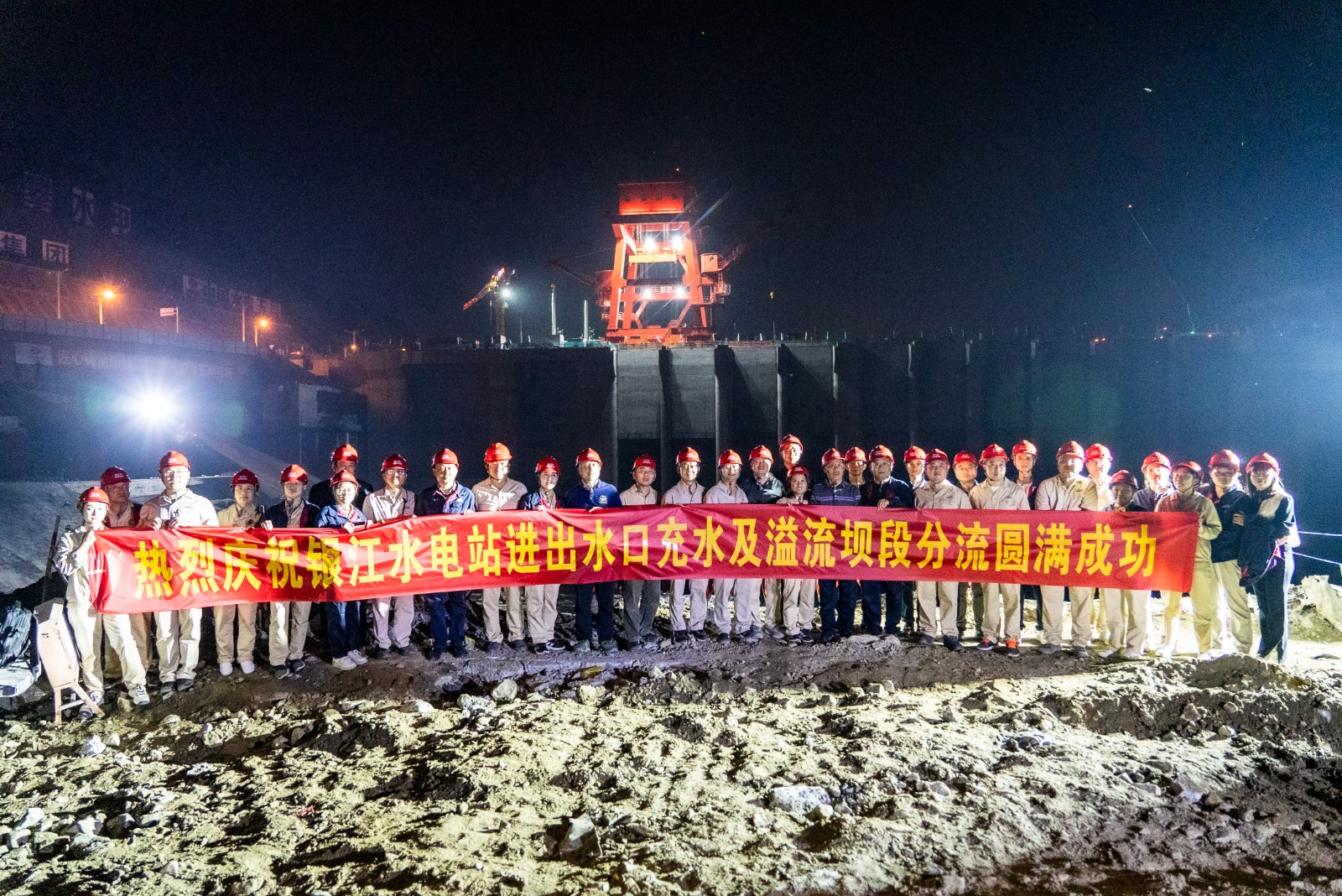 金秋十月,川投能源銀江水電站工程建設(shè)“進(jìn)度條”持續(xù)刷新。10月25日晚上,隨著川投能源副總經(jīng)理、導(dǎo)流明渠截流指揮長徐孝剛一聲令下,十余臺(tái)挖掘機(jī)在二期上游圍堰右岸進(jìn)行破口開挖,奔騰的金沙江水隨即涌入主河床廠房與溢流壩上游,充水平壓后江水經(jīng)溢流壩段流向下游,銀江水電站成功實(shí)現(xiàn)分流。這一重要進(jìn)展為按期完成導(dǎo)流明渠截流打下堅(jiān)實(shí)基礎(chǔ),也標(biāo)志著銀江水電站首臺(tái)機(jī)組投產(chǎn)發(fā)電正式進(jìn)入倒計(jì)時(shí)階段。