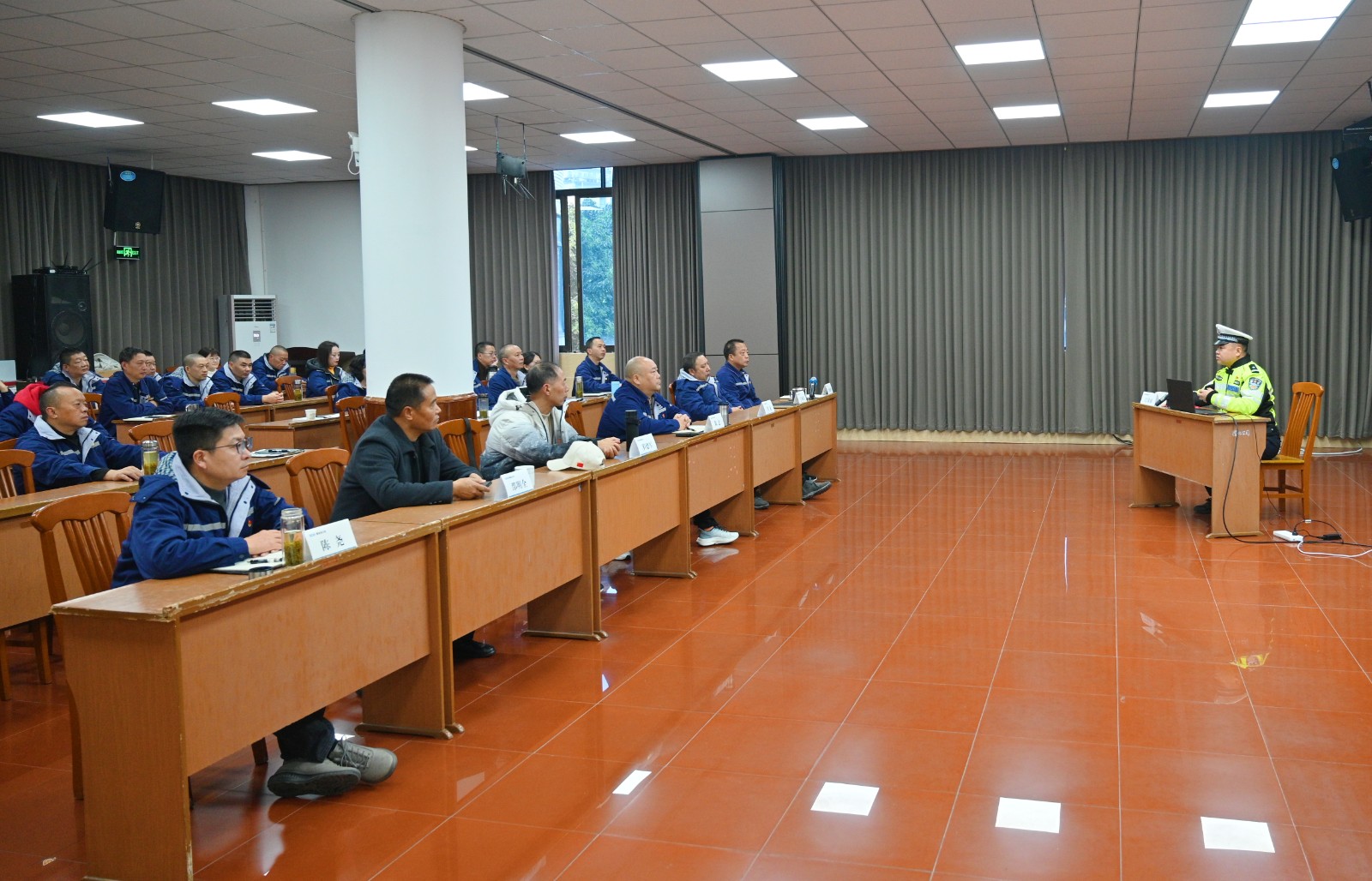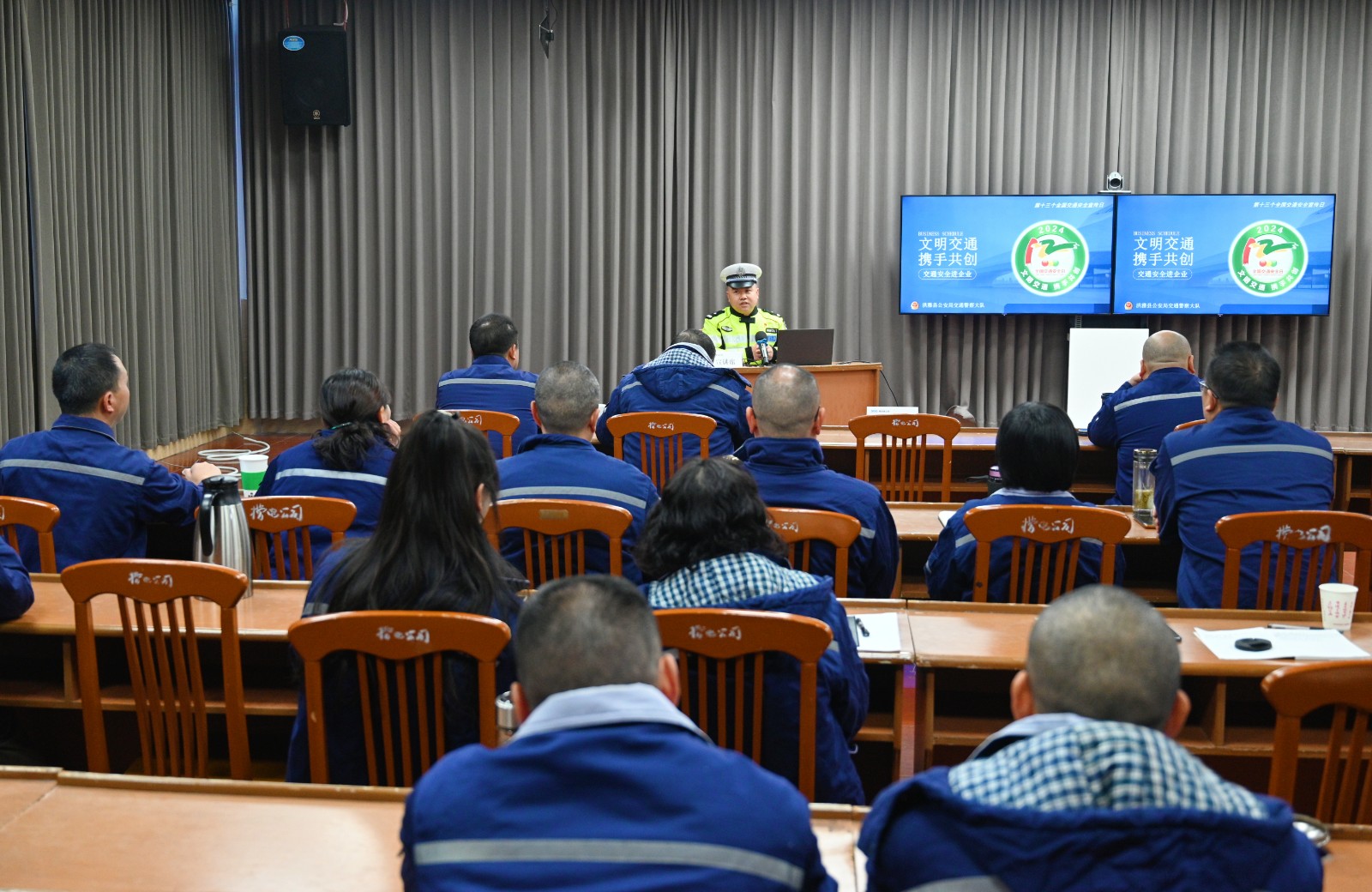 為進(jìn)一步強(qiáng)化員工的安全意識,提升員工自覺遵守交通規(guī)則的能動性,有效降低交通事故的風(fēng)險,在“全國交通安全日”來臨之際,槽漁灘公司邀請洪雅縣交通安全協(xié)會主席羅德軍、洪雅縣交通警察大隊(duì)警官賈龍到公司開展“文明出行 攜手共創(chuàng)”交通安全法律法規(guī)知識宣傳培訓(xùn)活動?;顒佑晒靖笨偨?jīng)理雷曉彬主持,公司在家班子成員、中層管理人員和全體駕駛員共計四十余人參加。