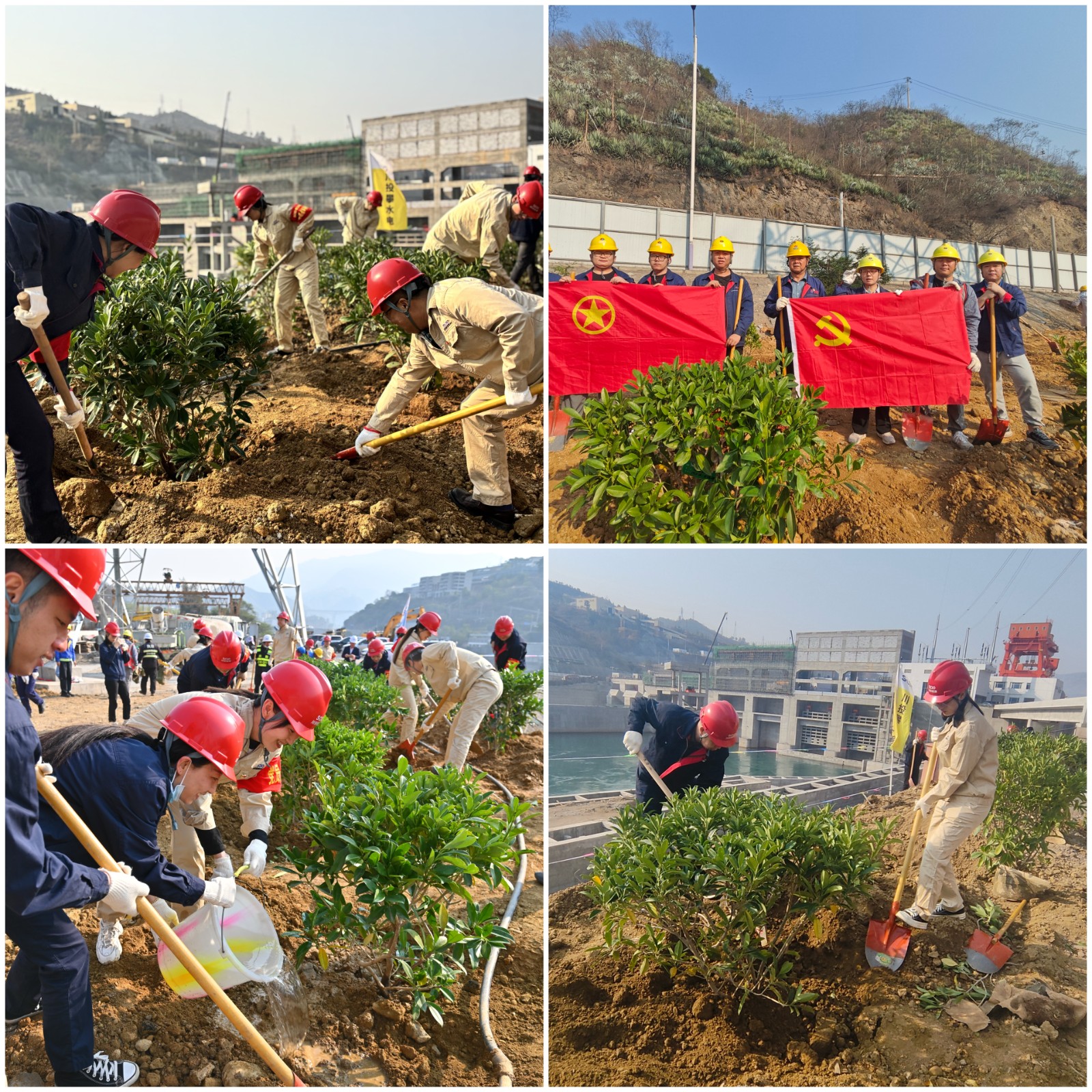 根據(jù)攀枝花氣候特點,本次植樹活動主要種植名為“非洲茉莉球”的常綠灌木,它具有耐曬、耐旱、耐炎熱等特點,觀賞和藥用價值都很高,常常被看作是尊重和友誼的象征。參與人員熱情高漲,兩人一組、三人一隊,紛紛拿起鐵鍬、水桶等工具投入到植樹行動中,大家分工明確,配合默契,有的揮鍬鏟土,有的扶苗填坑,還有的提水澆灌,現(xiàn)場一片熱火朝天的忙碌景象,在大家的共同努力下,35棵樹苗在銀江水電站“安家落戶”。