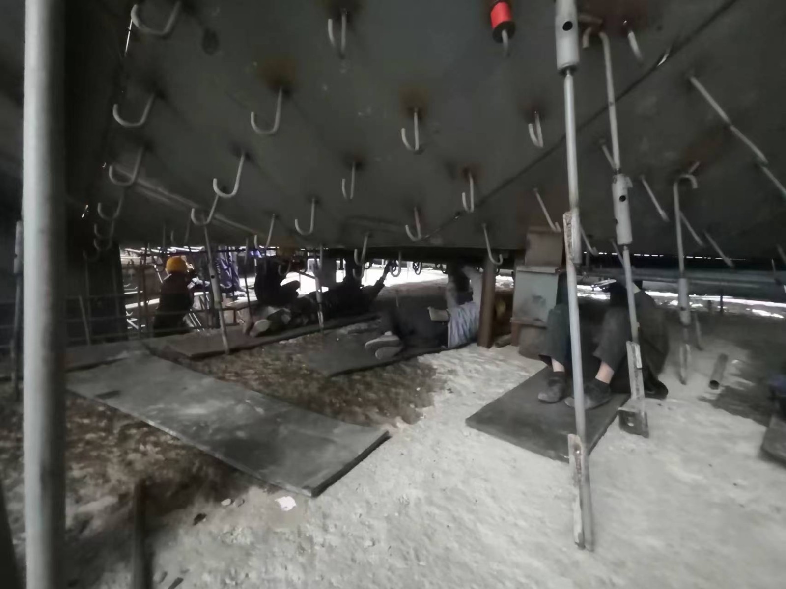 4號(hào)機(jī)組管形座二期混凝土施工的作業(yè)面最狹窄之處寬度僅0.8米,加之管形座上游里襯背面布滿錨鉤,實(shí)際可供作業(yè)的空間不足0.6米。在這樣艱難的條件下,作業(yè)工人憑借精湛的技藝與頑強(qiáng)的毅力,在狹小空間內(nèi)靈活輾轉(zhuǎn)騰挪,順利完成了近100噸鋼筋的制作安裝和3000立方米混凝土的澆筑任務(wù),創(chuàng)造了類似機(jī)組管形座二期混凝澆筑進(jìn)度新標(biāo)桿。