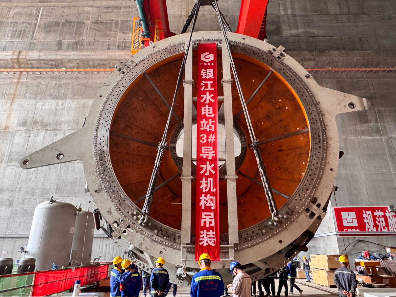 當(dāng)前,銀江水電站已進(jìn)入?2025年安全度汛目標(biāo)沖刺攻堅(jiān)期?,各項(xiàng)工作都在全力穩(wěn)步推進(jìn),3號(hào)機(jī)組的導(dǎo)水機(jī)構(gòu)、主軸等關(guān)鍵部件已陸續(xù)吊裝到位,預(yù)計(jì)5月底前將具備過(guò)流條件;同時(shí)三期工程11號(hào)至13號(hào)壩段的混凝土澆筑工作正熱火朝天地快速推進(jìn)。下一步,銀江水電站將錨定“安全度汛、全部投產(chǎn)”?雙核心目標(biāo),聚力攻堅(jiān)、加壓奮進(jìn),一是堅(jiān)持?黨建引領(lǐng)聚合力?,統(tǒng)籌協(xié)調(diào)全體建設(shè)者及參建各方,構(gòu)建“黨員先鋒隊(duì)+青年突擊隊(duì)+技術(shù)攻堅(jiān)”三級(jí)聯(lián)動(dòng)機(jī)制。二是嚴(yán)守?質(zhì)量安全雙紅線?,嚴(yán)格落實(shí)防汛應(yīng)急預(yù)案與施工標(biāo)準(zhǔn)化體系,對(duì)關(guān)鍵部位實(shí)施“網(wǎng)格化”巡查管控。三是聚焦?機(jī)電安裝攻堅(jiān)戰(zhàn)?,以“日跟蹤、周調(diào)度、月考核”機(jī)制全力推進(jìn)剩余4臺(tái)機(jī)組安裝工作,以“倒排工期、掛圖作戰(zhàn)”?的沖刺態(tài)勢(shì),確保實(shí)現(xiàn)2025年底全部機(jī)組投產(chǎn)發(fā)電目標(biāo)任務(wù)。