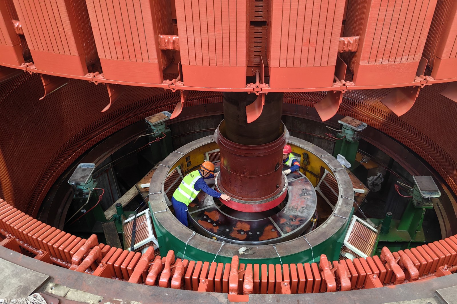 由于轉(zhuǎn)子與定子之間的間隙只有12毫米,要把這兩個(gè)“大家伙”精準(zhǔn)送回機(jī)坑指定位置并安裝好,難度系數(shù)非常高。川投電力高度重視,上下聯(lián)動(dòng),周密部署,全鏈條壓實(shí)安全生產(chǎn)責(zé)任,確保轉(zhuǎn)子回裝工作萬(wàn)無(wú)一失。