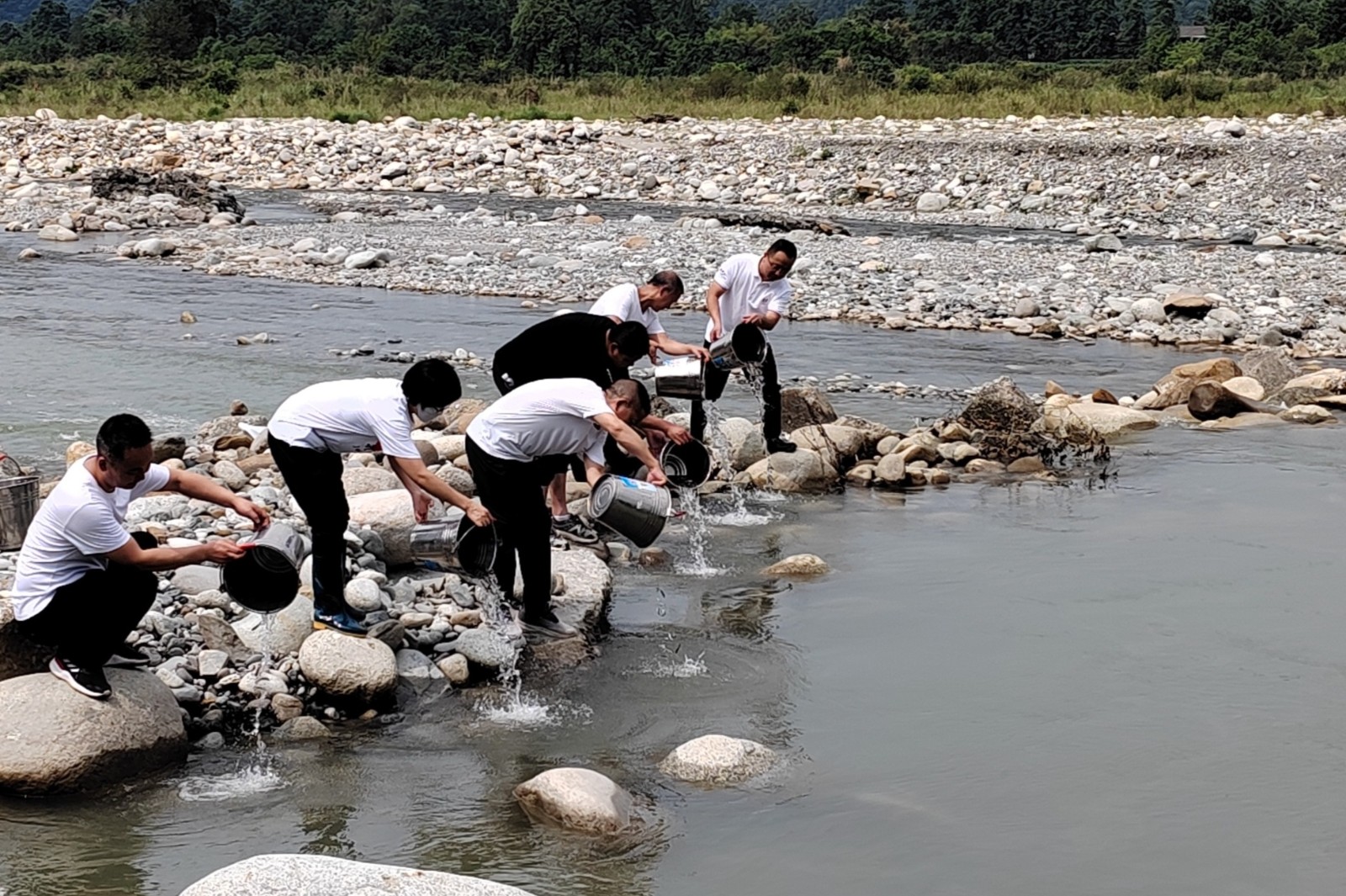 活動現(xiàn)場,在屬地政府、主管部門及群眾代表的見證和參與下,公司員工們將一尾尾活蹦亂跳的魚苗緩緩送入清澈的河水中,陽光下銀鱗閃爍的喜人場面引來岸邊群眾陣陣掌聲。本次活動投放的1萬尾齊口裂腹魚魚苗為湔江河道特有魚種,且按放流尺寸規(guī)格嚴(yán)格挑選確保其在自然水流環(huán)境中的適應(yīng)生存能力,對于恢復(fù)所在水域水生生物資源,促進(jìn)生態(tài)系統(tǒng)平衡具有重要的意義。