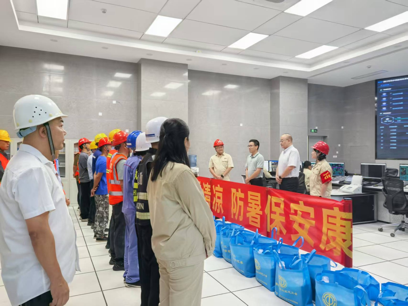 慰問現(xiàn)場,張平首先向銀江水電站一線人員表示親切的問候,對大家在高溫酷暑下堅守崗位、辛勤工作的精神表示高度的贊揚(yáng),叮囑大家一定要保證安全建設(shè)、安全生產(chǎn),全面做好各類防護(hù)措施,注意自身安全和健康。希望攀水電公司能夠繼續(xù)發(fā)揚(yáng)優(yōu)良傳統(tǒng),牢固樹立以人為本的理念,壓實安全管理責(zé)任,認(rèn)真落實安全生產(chǎn)月活動要求,密切關(guān)注氣象預(yù)警,嚴(yán)格執(zhí)行高溫天氣作業(yè)規(guī)定,切實維護(hù)廣大職工的勞動安全健康權(quán)益,做好防暑降溫服務(wù)工作,在銀江水電站形成人人抓安全、人人擔(dān)責(zé)任的良好氛圍,切實筑牢安全生產(chǎn)防線。