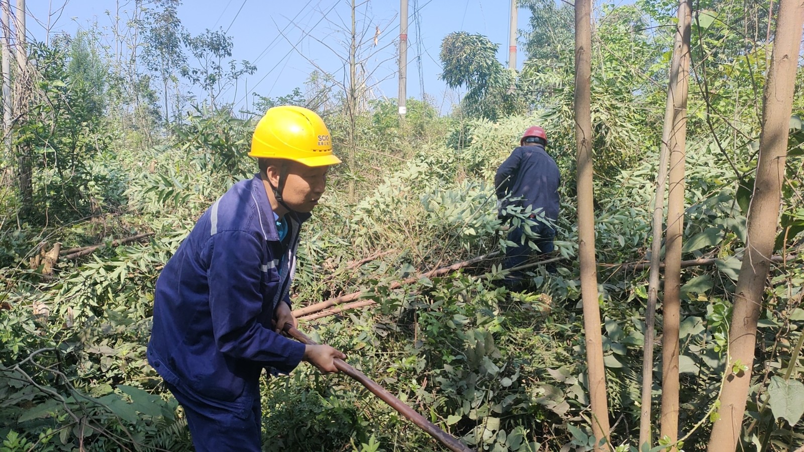 高奉山電廠位于四川盆地西南邊緣的洪雅縣,這里年降雨量1385毫米,電廠的送出線路有80%跨越或臨近林區(qū)。97基桿塔如星辰般散落在3個鄉(xiāng)鎮(zhèn)、12個村落構(gòu)成的30多公里線路上。位置最為深入的鐵塔,電廠維護人員從早上8時出發(fā)上山,要一直到下午才能到達,他們徒步前行,一步步踩出“保電長征”的印記。