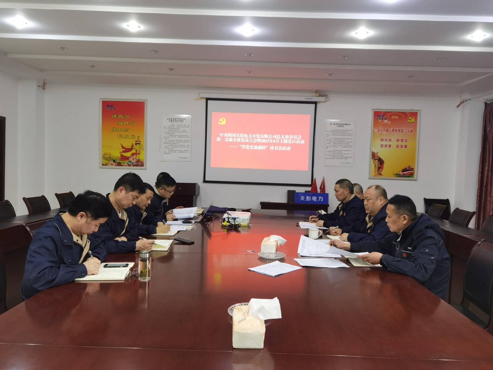 4月29日上午,天彭電力黨總支在公司二樓會(huì)議室召開2021年第4次中心組學(xué)習(xí)(擴(kuò)大)會(huì)暨黨史學(xué)習(xí)教育專題讀書會(huì),公司領(lǐng)導(dǎo)、各支部書記參加會(huì)議,會(huì)議由黨總支書記、總經(jīng)理陳忠主持。