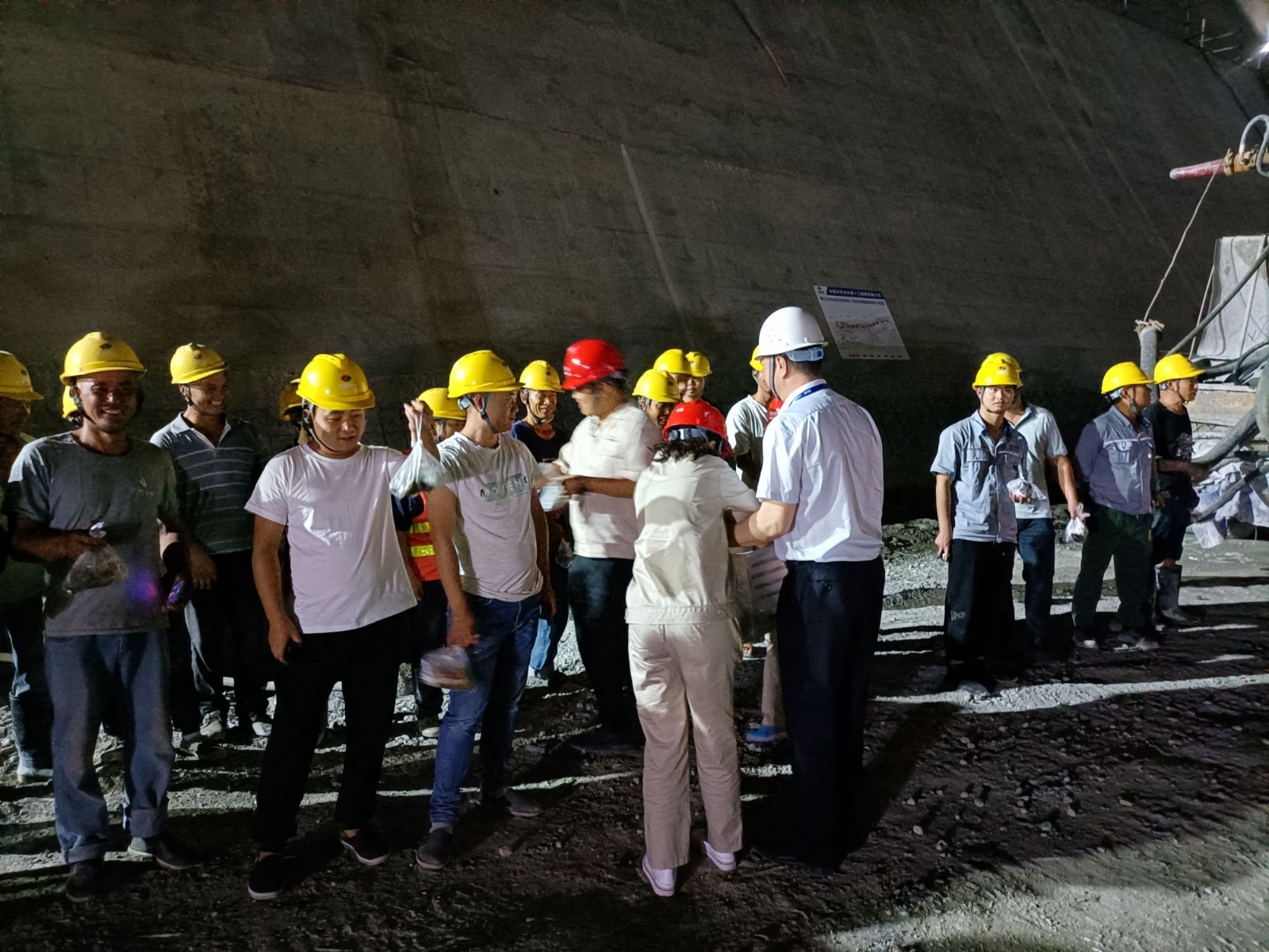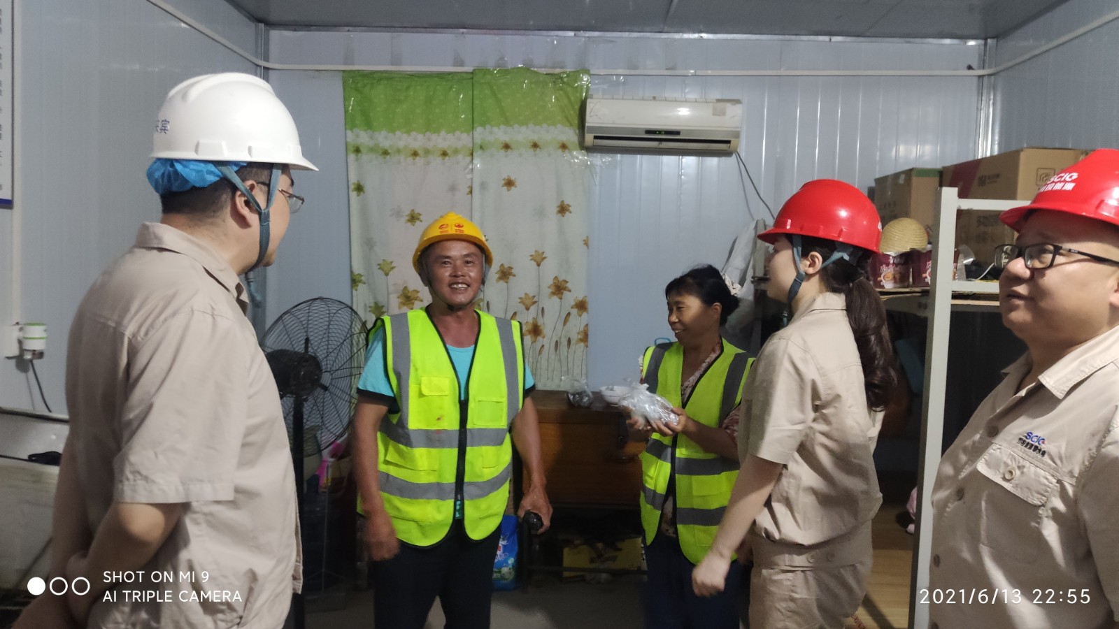 6月13日端午節(jié)前夕深夜,公司值班領導、黨總支委員、董事會秘書、工會主席鄧勇,總經(jīng)理助理唐伽帶領值班人員,對銀江水電站工地現(xiàn)場防洪度汛值班點位及施工現(xiàn)場進行了檢查;公司志愿者服務隊共計10余人對節(jié)日期間堅守在銀江水電站工地夜間施工的一線人員進行了慰問。