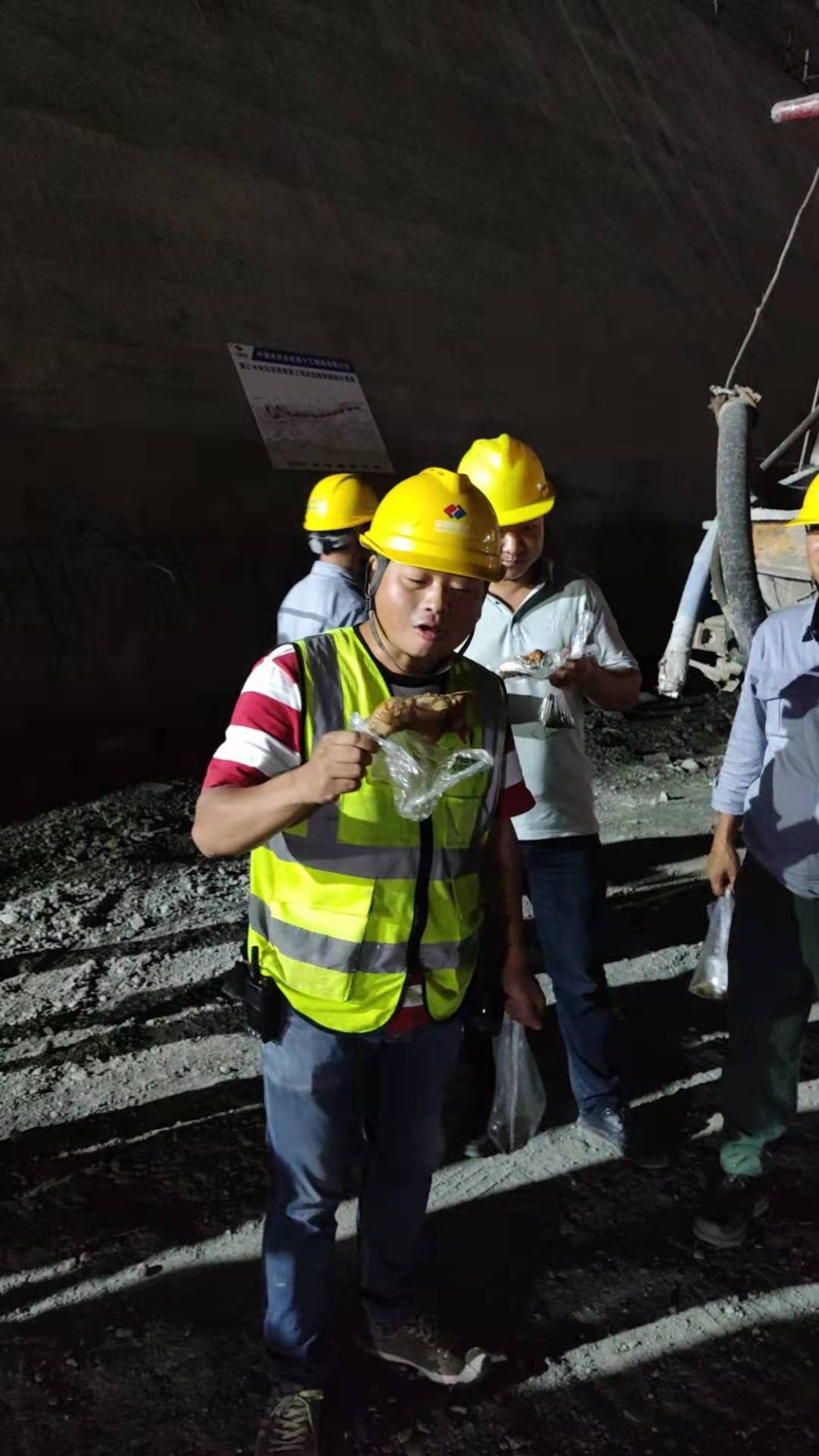 當日下午公司志愿者就開始忙活起來,鹵雞腿、包粽子、煮鹽蛋,采用流水線工作方式,把熱乎乎的雞腿、粽子、咸鴨蛋等進行分裝,方便工友在工地食用。晚上十點,慰問人員分成三組,分別前往康家溝渣場、銀江大橋、導流明渠、砂石骨料加工系統(tǒng)、混凝土生產(chǎn)系統(tǒng)等值班點位和夜間施工現(xiàn)場,將慰問品送到一線工友們的手中,對端午佳節(jié)期間依然奮戰(zhàn)在施工一線的人員致以親切問候,對大家咬緊牙關、不畏疲勞、迎難而上的工作態(tài)度表示充分肯定,對大家舍小家顧大家的奉獻精神致以崇高敬意,同時叮囑大家一定要注意身體健康和夜間施工安全。