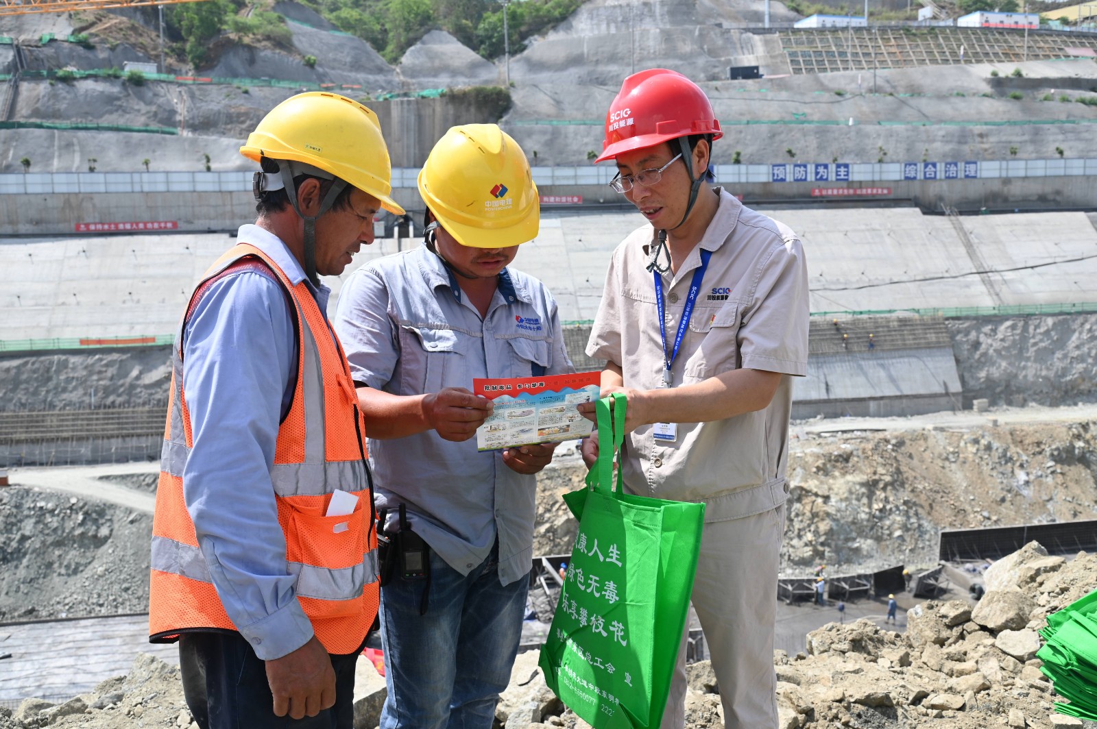 活動結(jié)束后,川能能源副總經(jīng)理、攀水電公司黨總支書記、董事長徐孝剛帶領(lǐng)大家到施工現(xiàn)場,為一線建設(shè)者發(fā)放禁毒宣傳資料,現(xiàn)場講解禁毒知識,希望每一位職工與家人都要珍愛生命、遠離毒品,并要求在隨后公司開展的安全知識競賽中增加禁毒知識,進一步增強公司及參建單位全體職工的識毒、防毒、拒毒的意識和能力,為構(gòu)建和諧無毒工地奠定基礎(chǔ)。