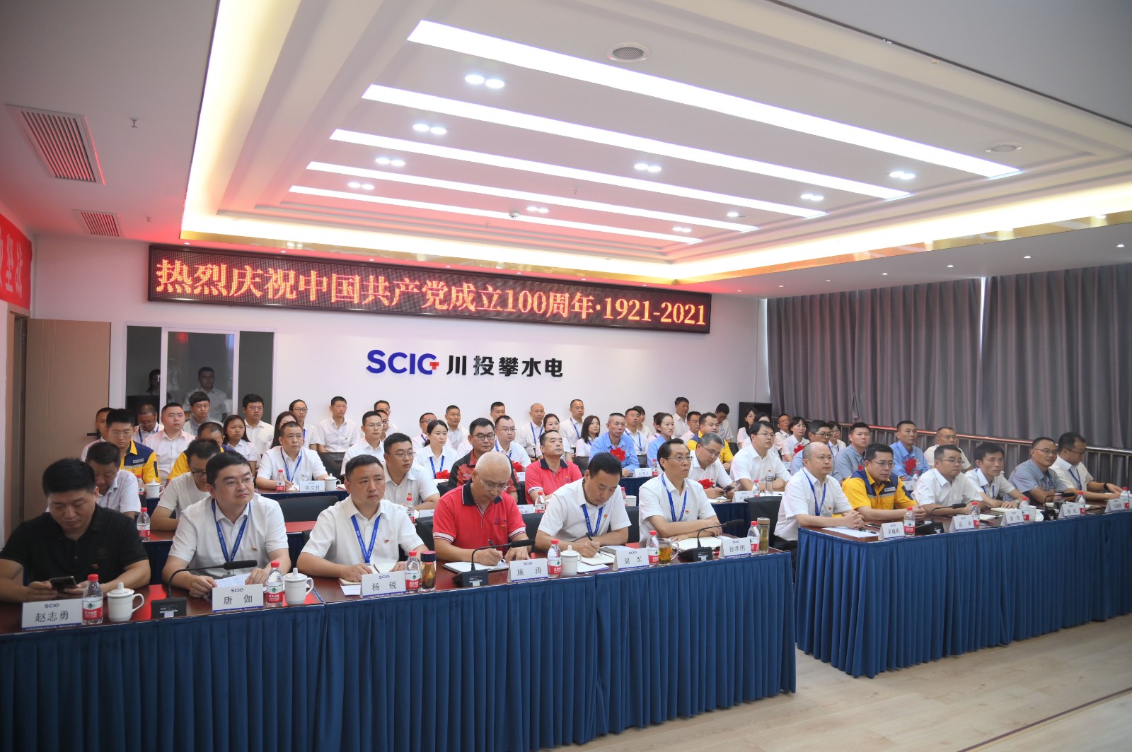 百年風展紅旗如畫,百年崢嶸歲月如歌。7月1日下午,攀水電公司召開慶祝建黨100周年暨“七一”表彰大會,川投能源副總經(jīng)理、攀水電公司黨總支書記、董事長徐孝剛,攀水電公司全體員工,參建單位負責人、黨員代表共計80余人參會,大會由公司黨總支委員、董事會秘書、工會主席鄧勇主持。
