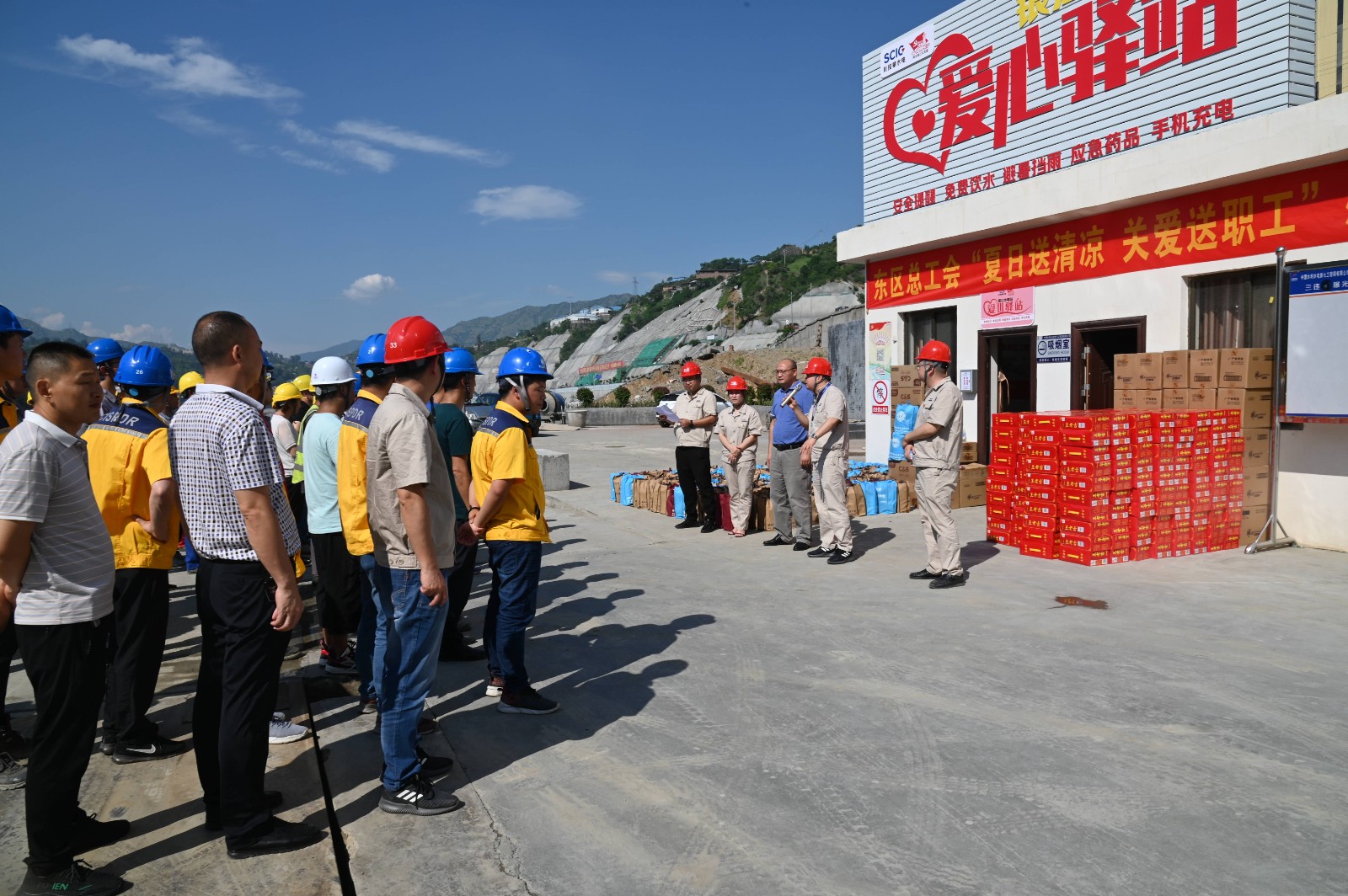 7月以來,攀枝花氣溫持續(xù)升高,為了保證一線職工在高溫環(huán)境下安全、清涼工作,近日攀枝花市東區(qū)總工會黨組書記、常務(wù)副主席劉貴平一行來到川投能源銀江水電站施工現(xiàn)場愛心驛站,為一線建設(shè)者們送來了300余份清涼解暑飲品和防暑降溫用品,慰問奮戰(zhàn)在高溫一線的作業(yè)人員和管理人員。