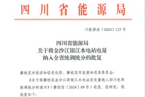 【攀水電公司】銀江水電站成功取得省能源局統(tǒng)調統(tǒng)分批復